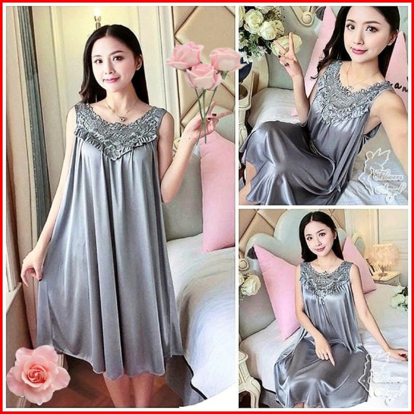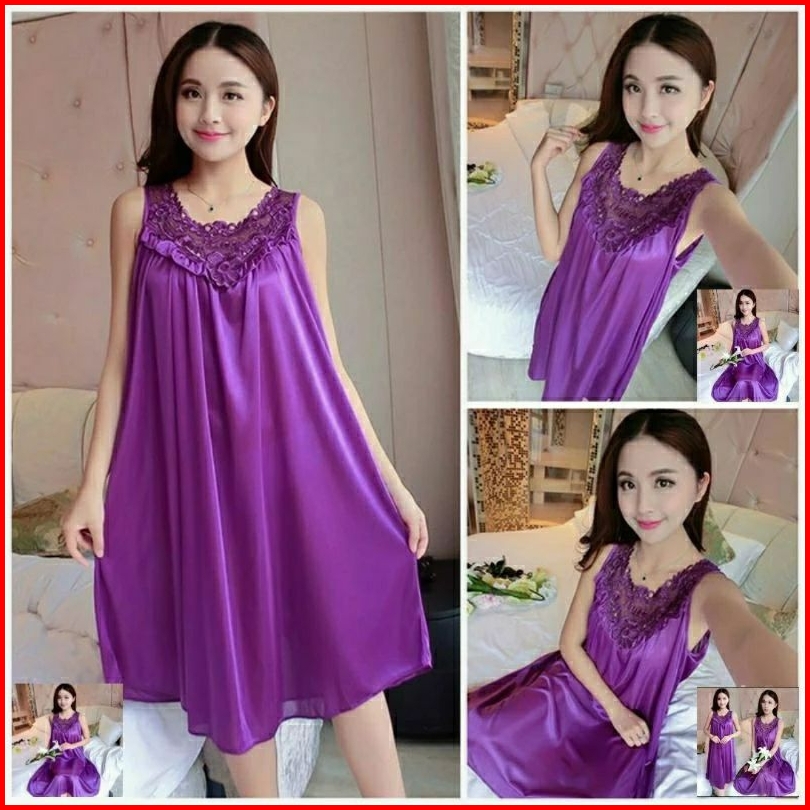 Baju Tidur Wanita Dress Lingerie Sexi Daster Happy Bahan Satin Size Xxl Jumbo