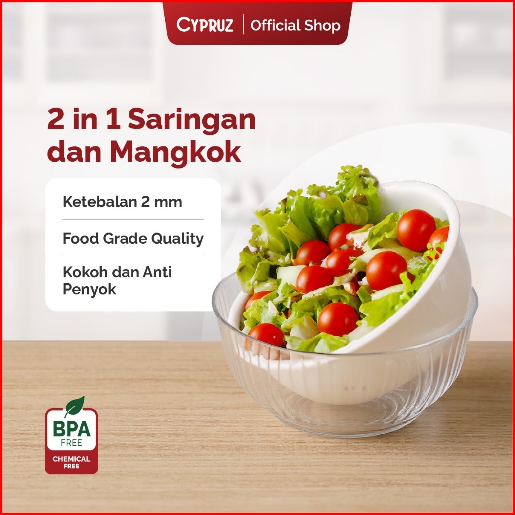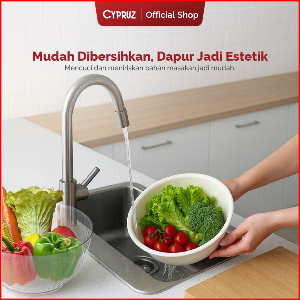 Cypruz Mangkok Baskom Saringan Ganda Cuci Buah Sayur Drain Basket