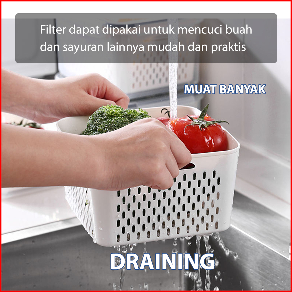 3pcs Keranjang Saringan Pengering Sayur Buah Serbaguna Kotak Penyimpanan Multifungsi Kulkas- Rx-a B C