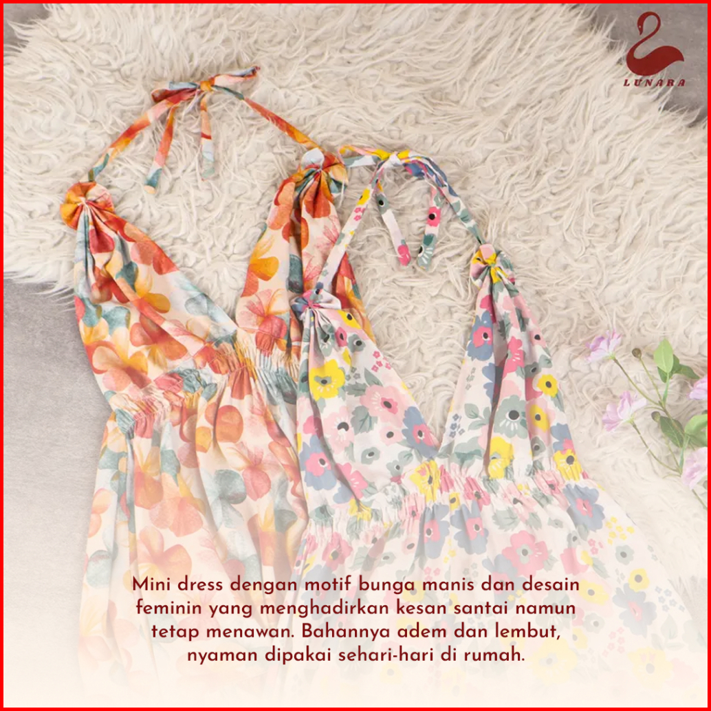 Lunara Mini Dres Luna Piyama Wanita Rayon Premium Motif Bunga Pohon Santai Nyaman Bahan Adem Lembut Dan Dingin Ideal Unt