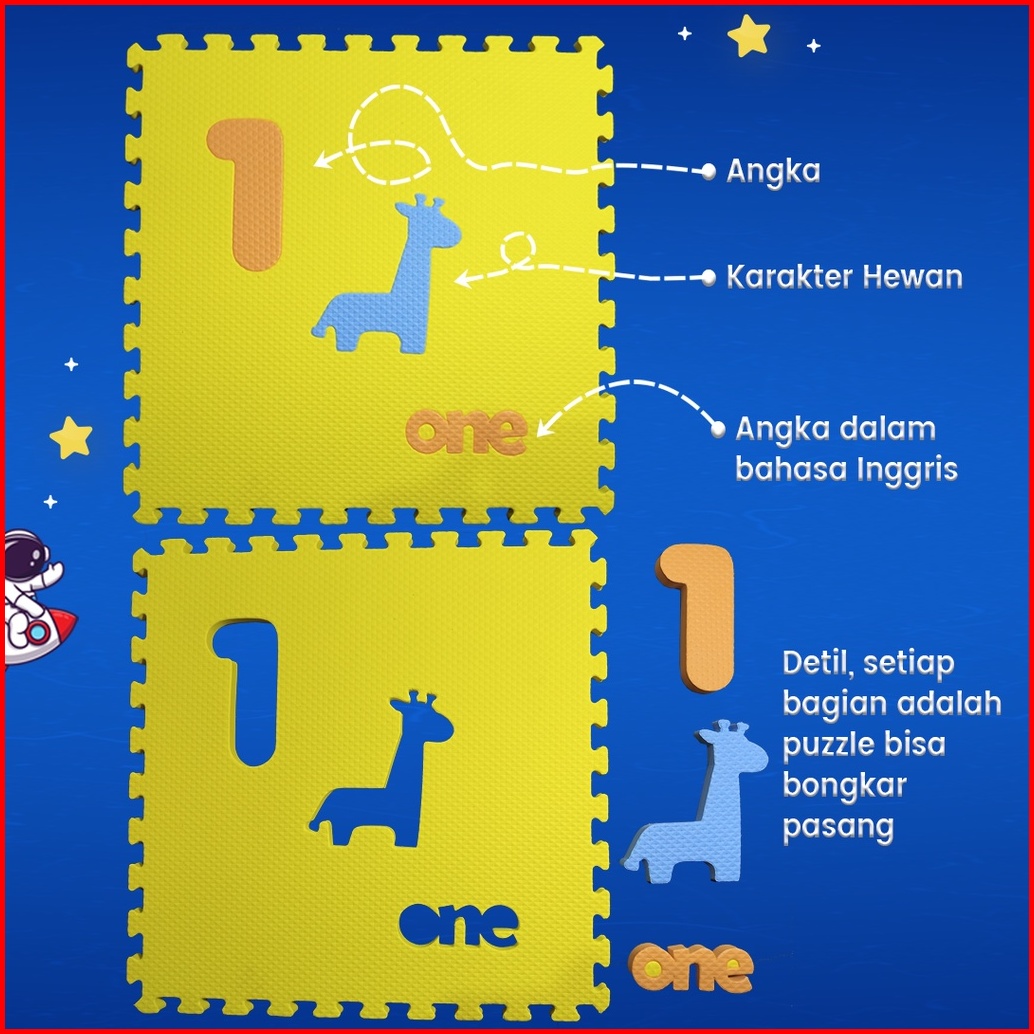 Karpet Puzzle Karakter Tebal 1cm Alas Bermain Anak Mainan Edukatif Matras Puzzle Karakter Angka Hewan Warna Warni