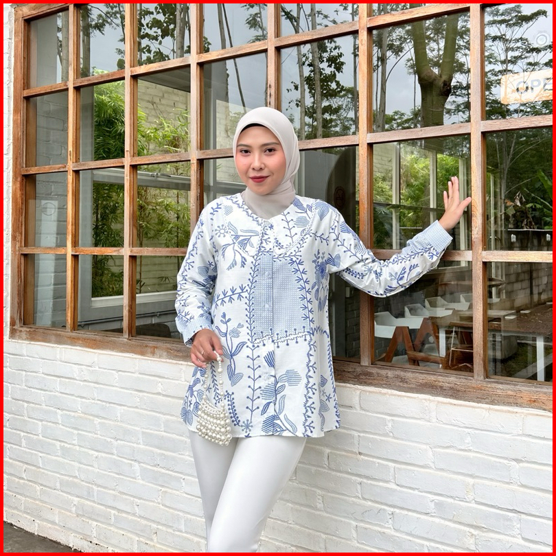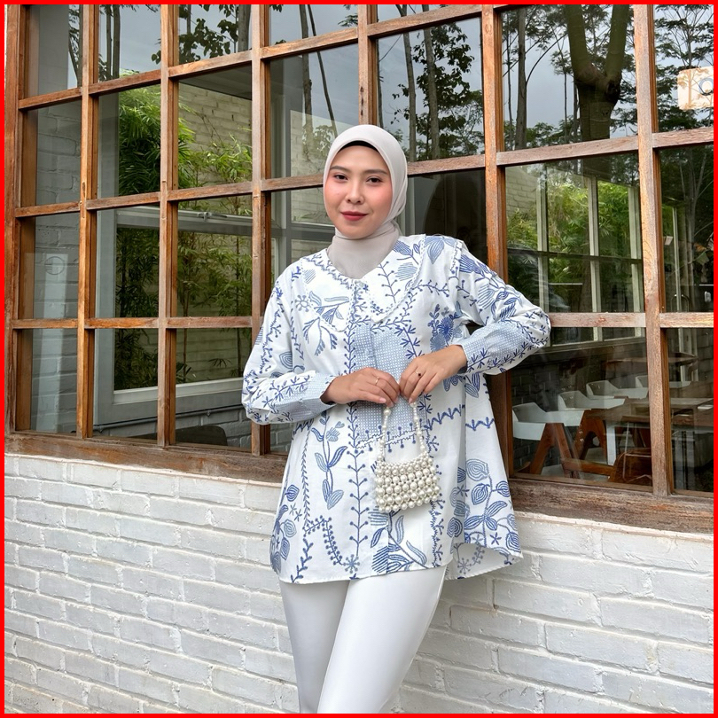 Blouse Batik Laura Kancing Depan Kerah Renda Katun S-4xl