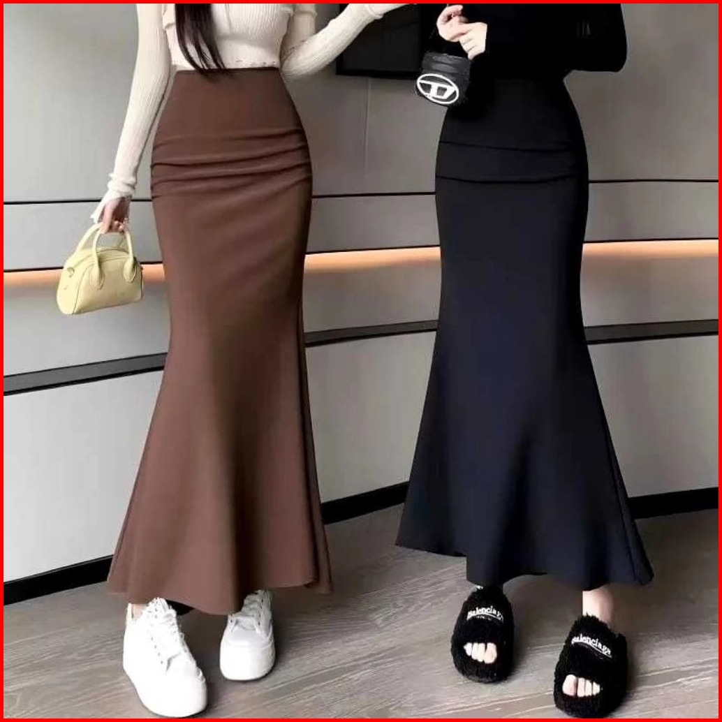 Lunar Mermaid Skirt - Scuba Premium Rok Flare Wanita Basic Polos - Maxi Midi Rok Panjang Wanita Adem Melar Elegan Kekini