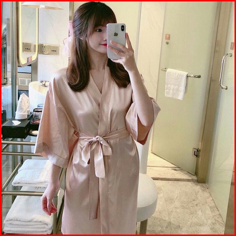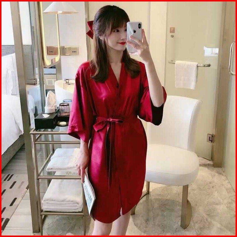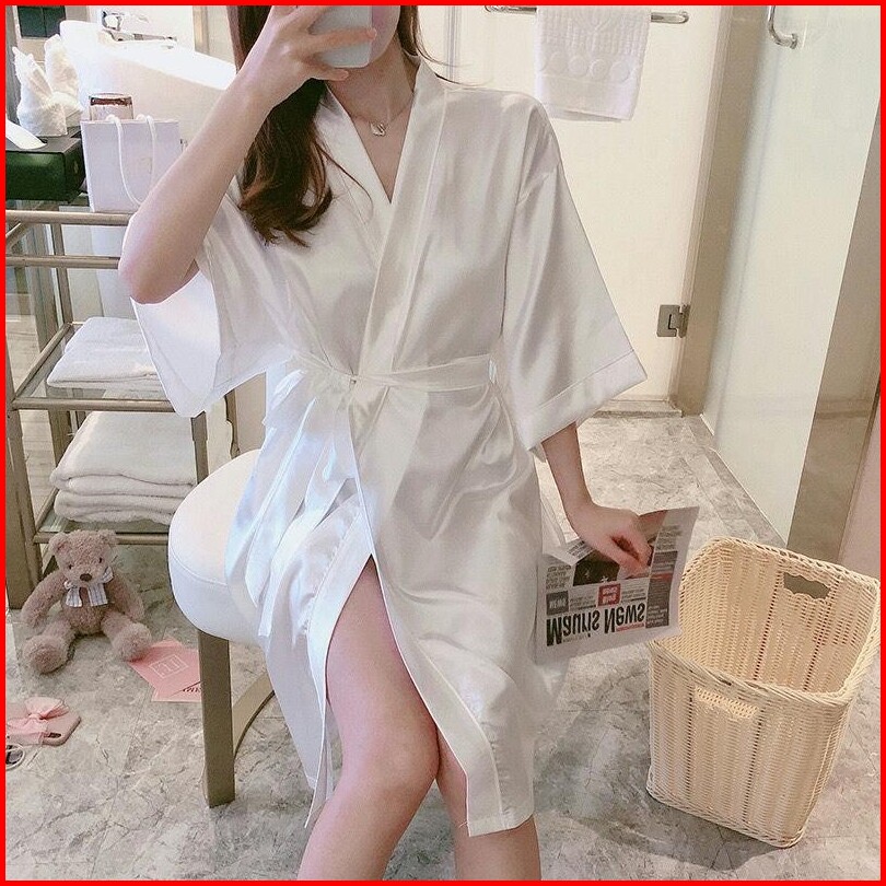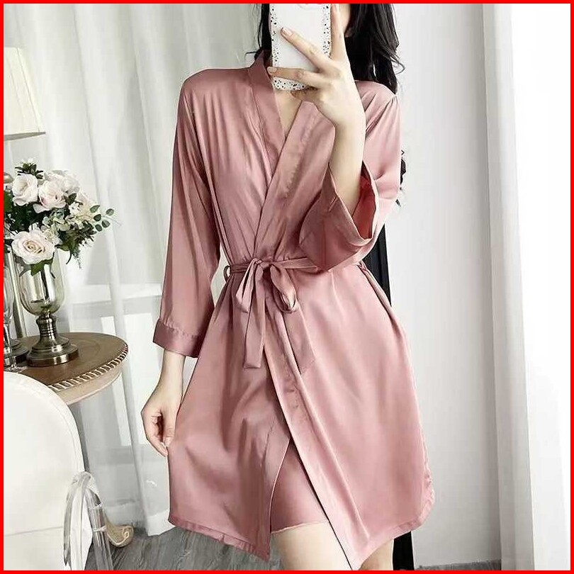 Forever Baju Tidur Kimono Wanita Bahan Satin Model Kimono Polos Sleepwear Bahan Satin Ukuran Free Size Motif Polosan Gar