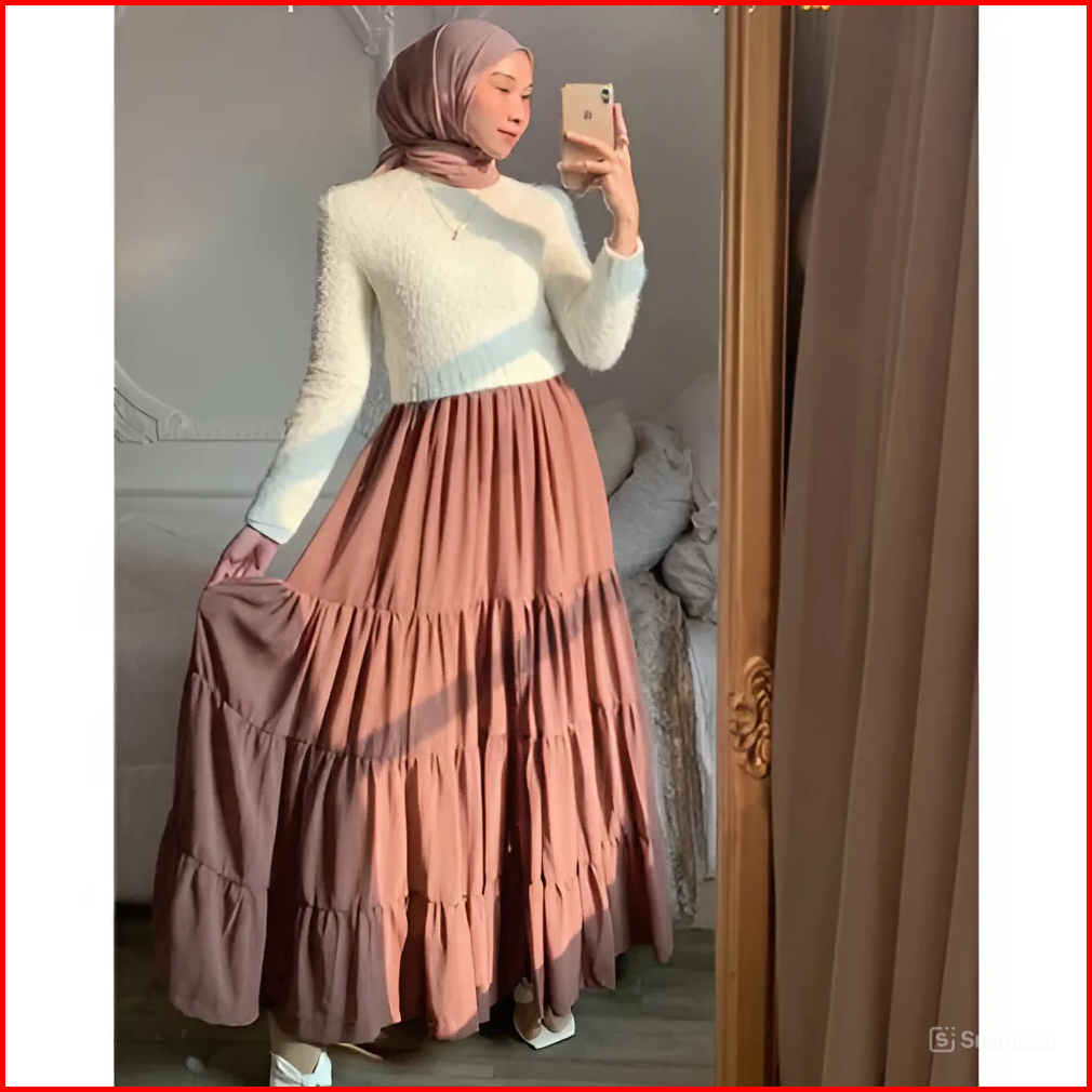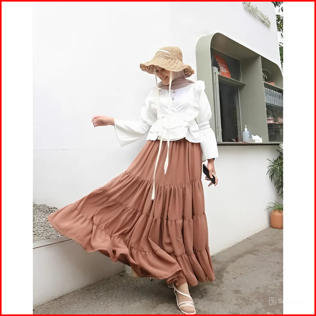 Rok Canda 4susun Ruffle Skirt 4 Susun Rok Panjang Wanita Skirt Korean Style Rok Rempel Wanita