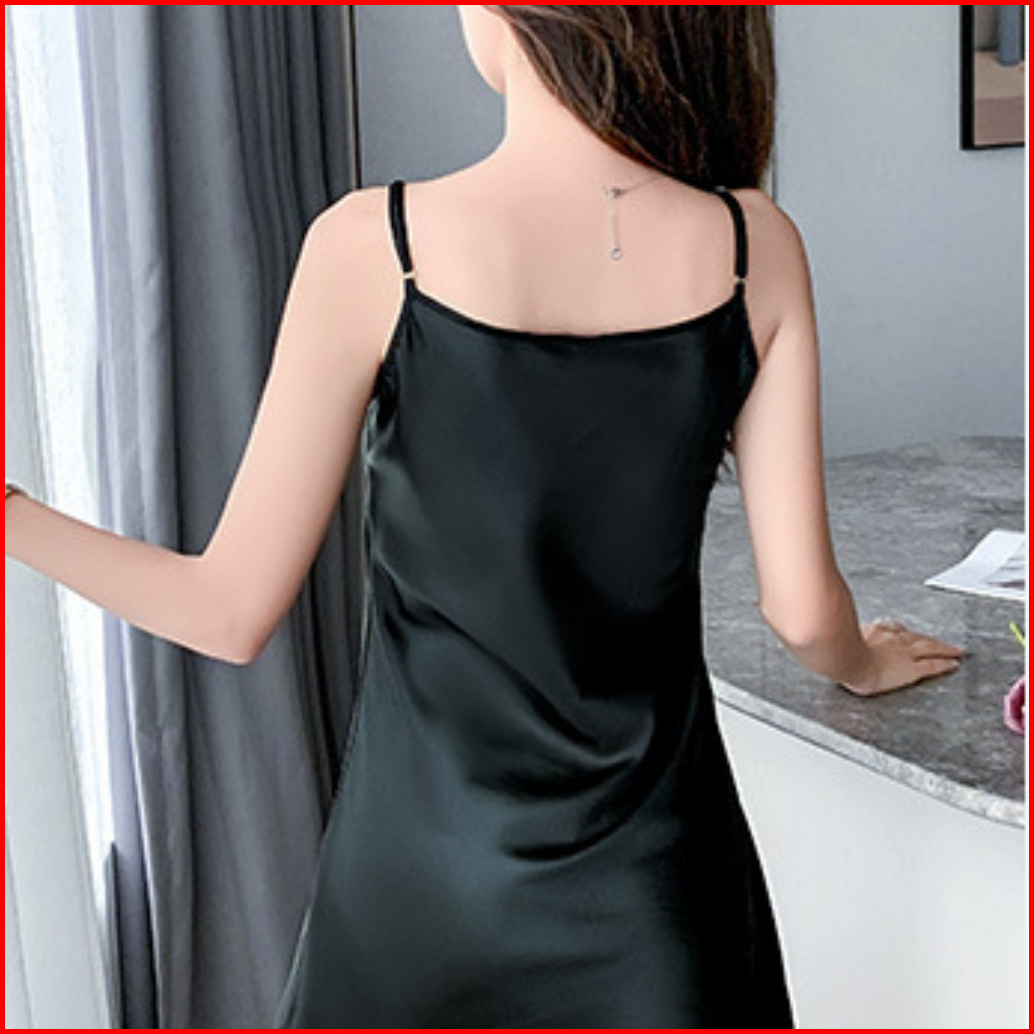 Yesy Fashion Piyama Midi Dress Tidur Wanita Sexy Satin Tanpa Lengan Cantik Korean Style Dps