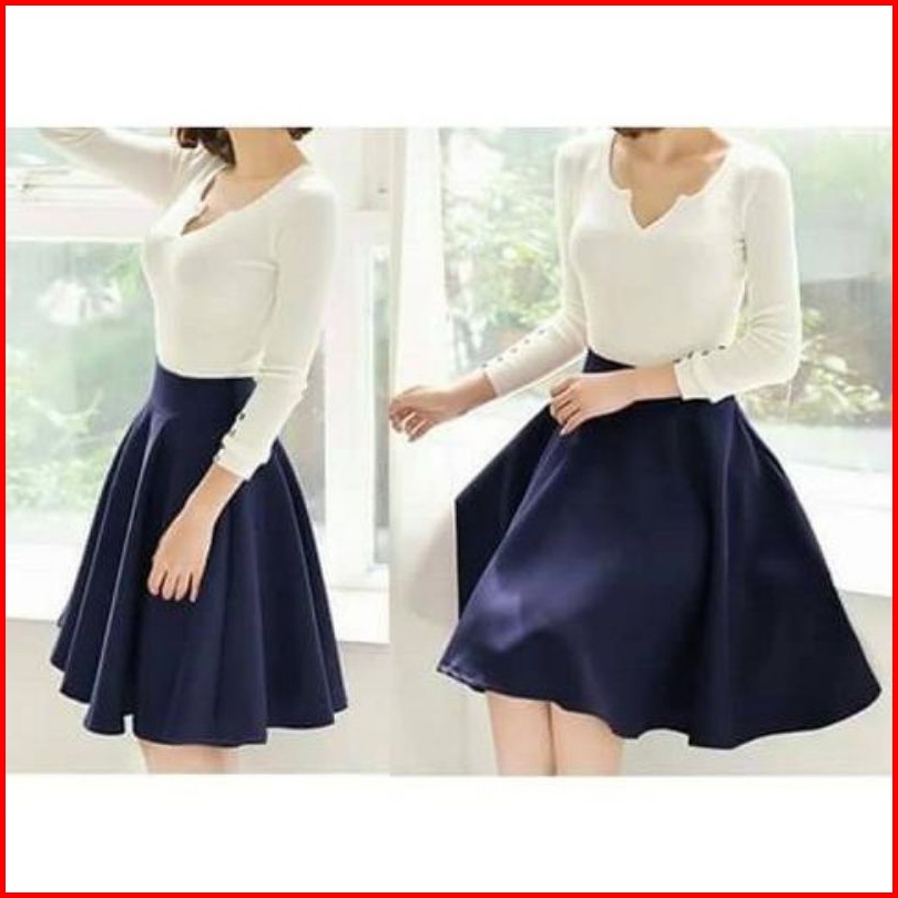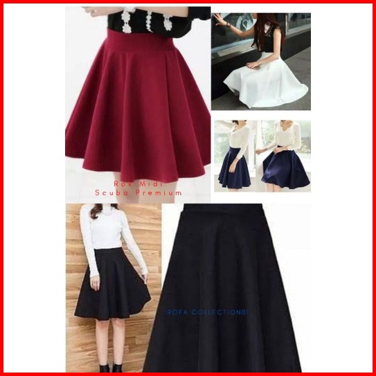 Rok Midi Flare Scuba Elastis Ukuran L-xl
