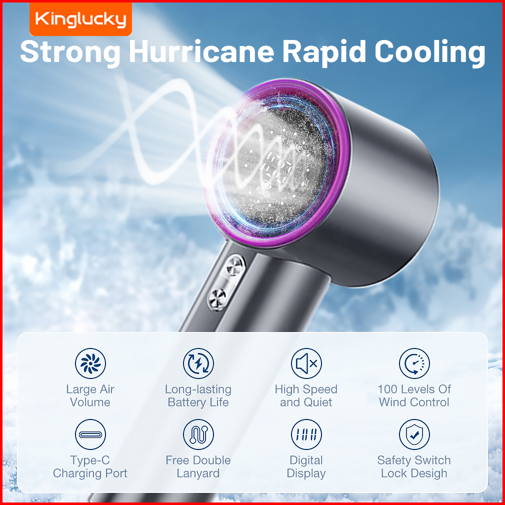 Kinglucky Mini High-speed Kipas Strong Wind 100 Gear Wind Speed Kipas Angin Semi-conductor Fan Digital Display Adjustabl