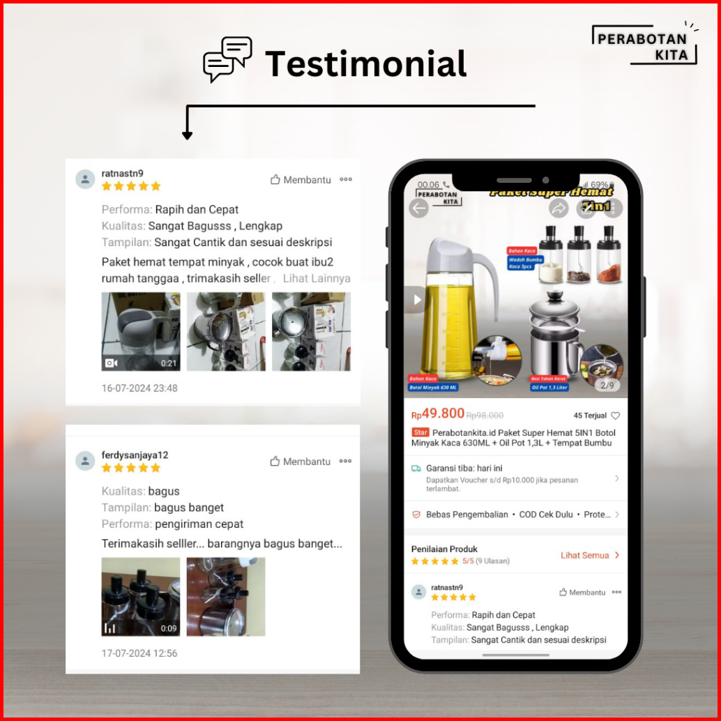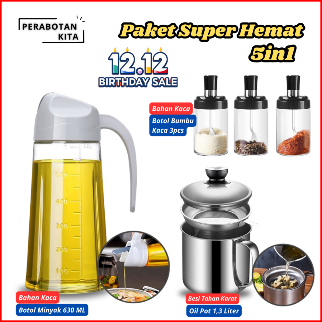 Perabotankita.id Paket Super Hemat 5in1 Botol Minyak Kaca 630ml Oil Pot 1 3l Tempat Bumbu Botol Kaca