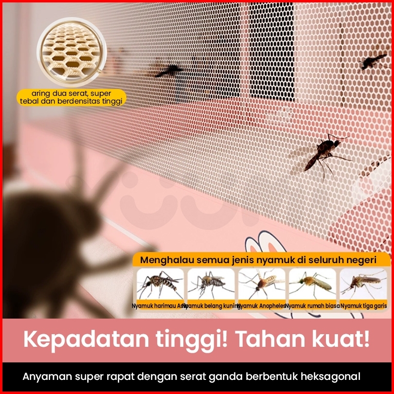 Yuumi Cartoon Kelambu Tidur Anti Nyamuk Anti Jatuh Bayi Dewasa - 2 Doors Kelambu Tenda Jaring Super Padat 180x200cm