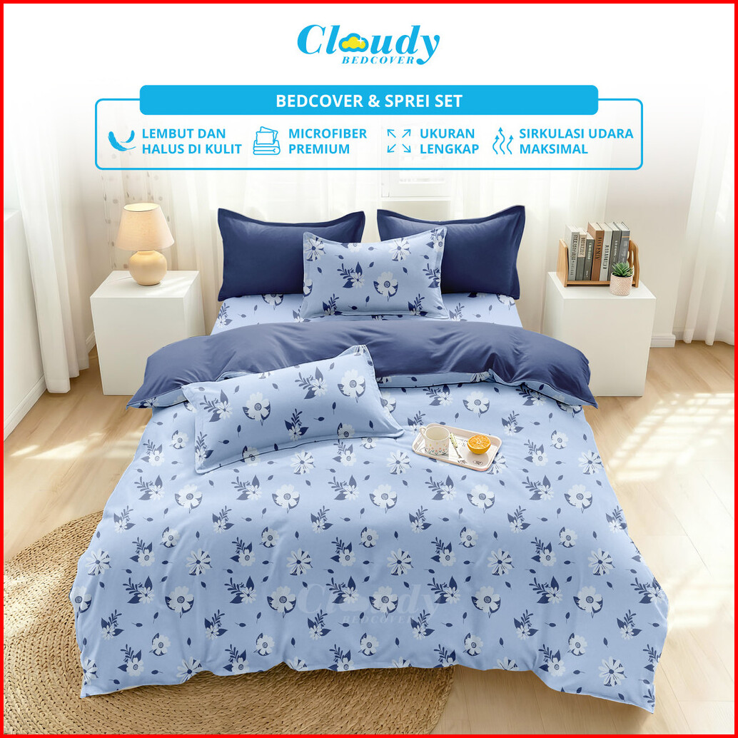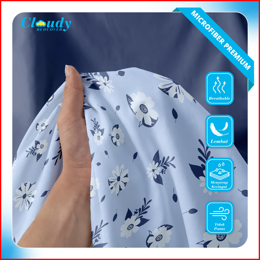 Bedcover Set Sprei Elouise Blue Mix Sapphire - Ukuran Lengkap 90x200 - 200x200 - Cloudy Bedcover