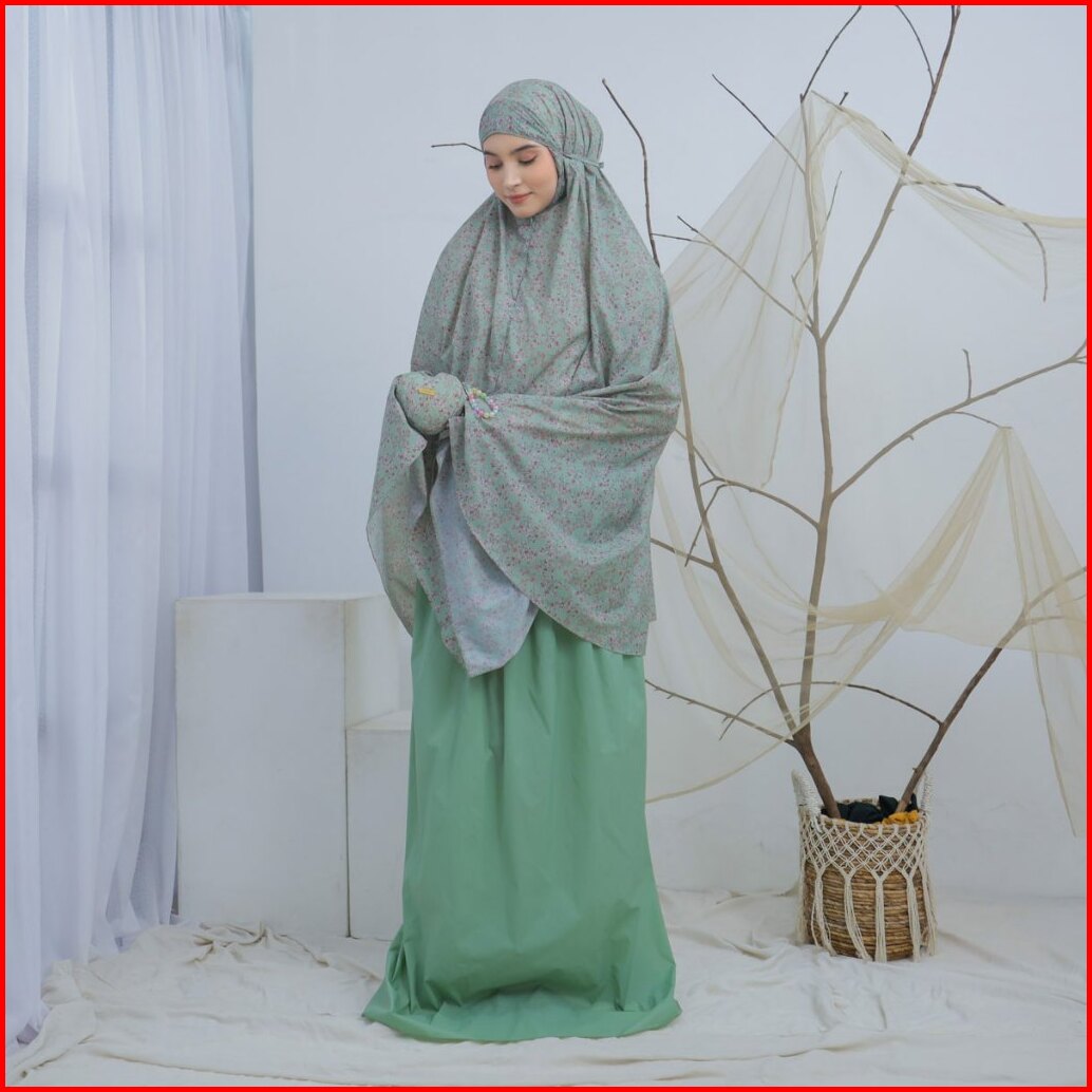 Fauziah - Mukena Dewasa Travel Mini Pouch Resleting 2in1 Parasut Motif Kombinasi Polos