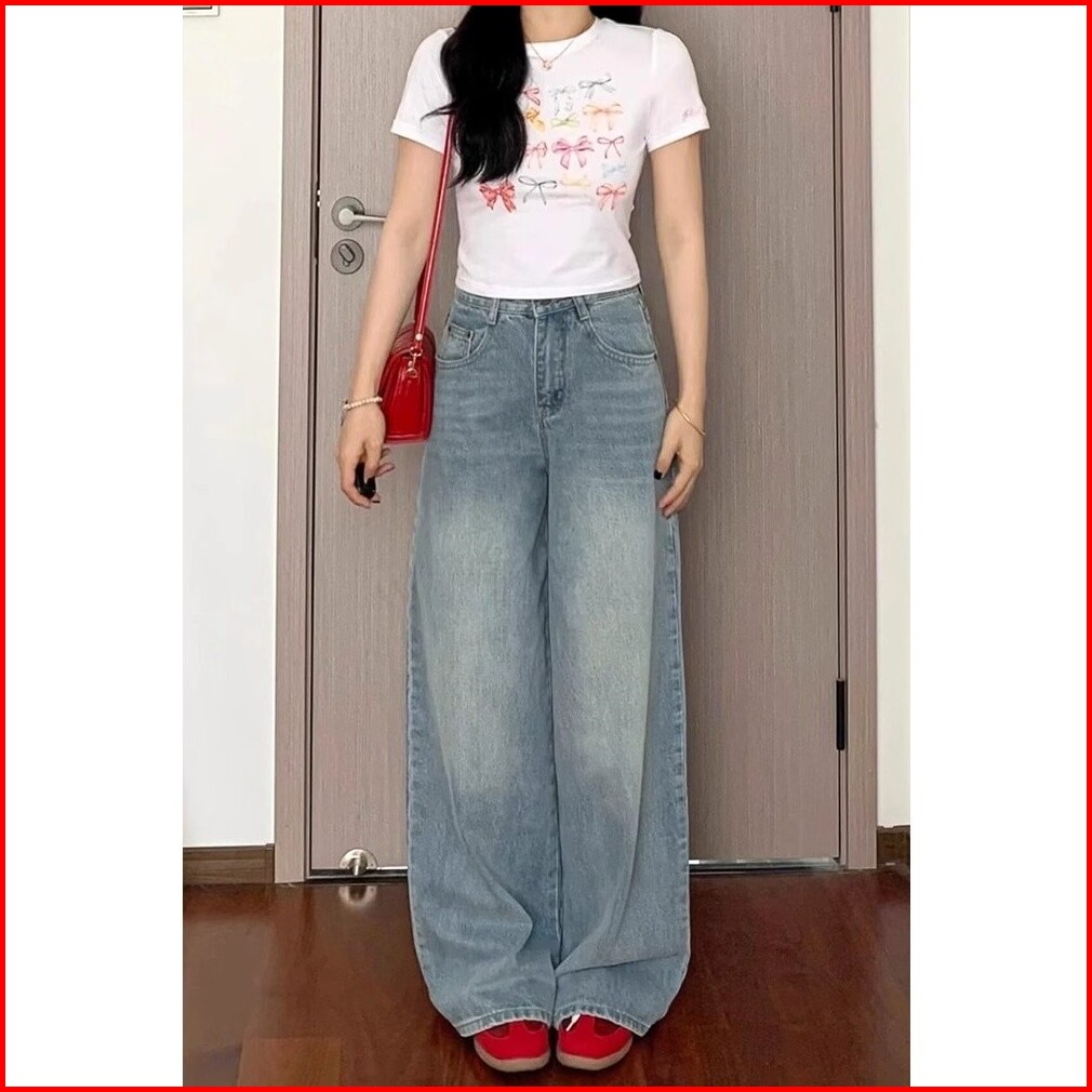Lulu Jeans Celana Jeans Terbaru Kulot Korea Biru Muda Pinggang Tinggi--baggy Jeans -baggy Baggy