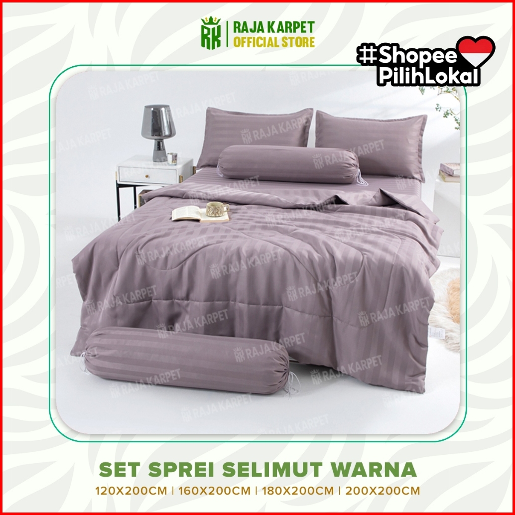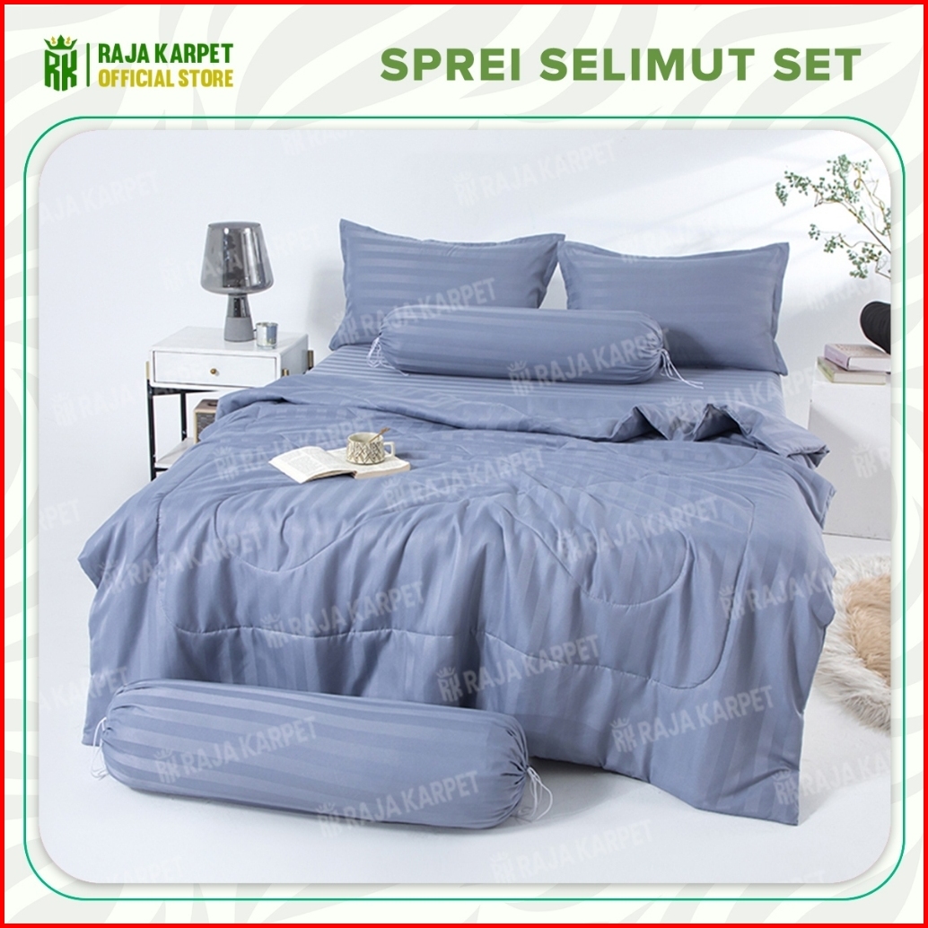 Raja Set Sprei Bedcover Sarung Bantal Guling Motif Polos Embos Salur Bedcover Set Seprei Premium