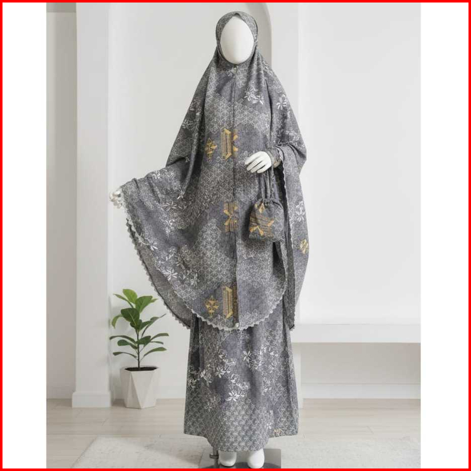Mukena Katun Motif 2in1 Traveling Mini Pouch Khadija Aisha Series