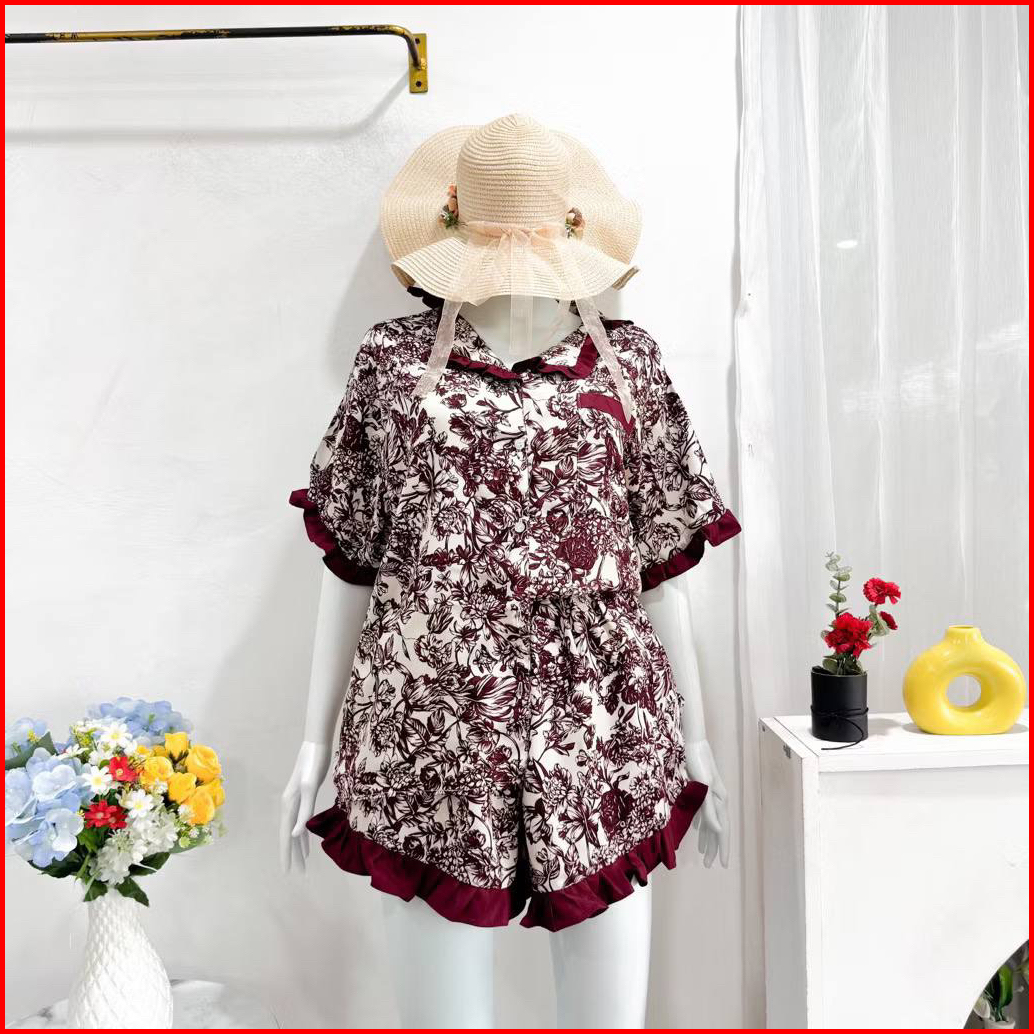 Vivi Set One Set Wanita Rayon Premium Ld 120cm Mix Motif Polos Twill Setelan Celana Pendek