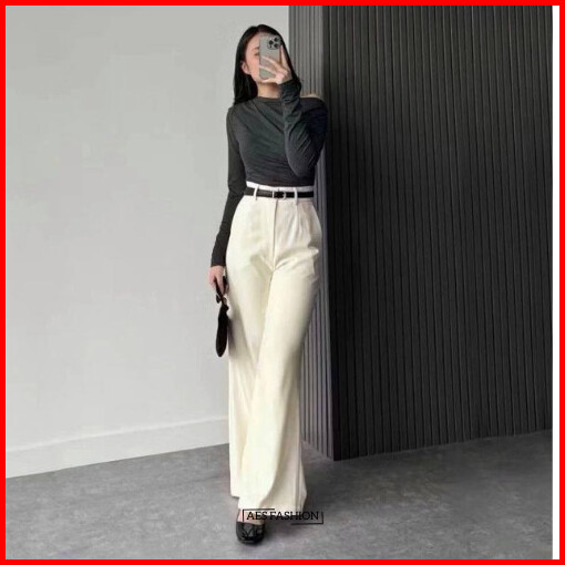 Etta Pants Highwaist Flare Pants Loose Cutbray Korean Style Celana Kantor Semi Wol Wanita Premium