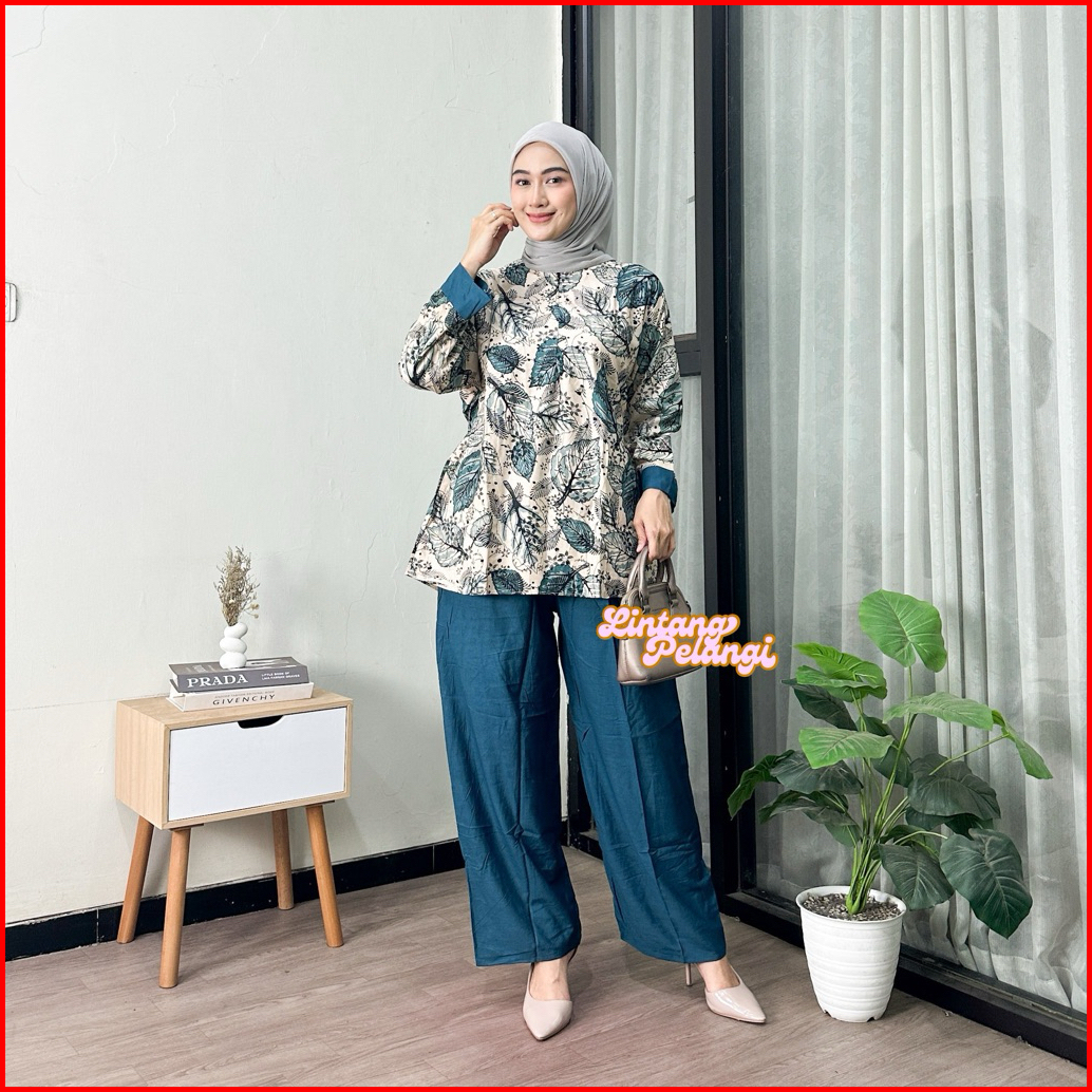 One Set Rayon Motif Terbaru Ld 120cm Setelan Rayon Wanita Jumbo Busui Resleting