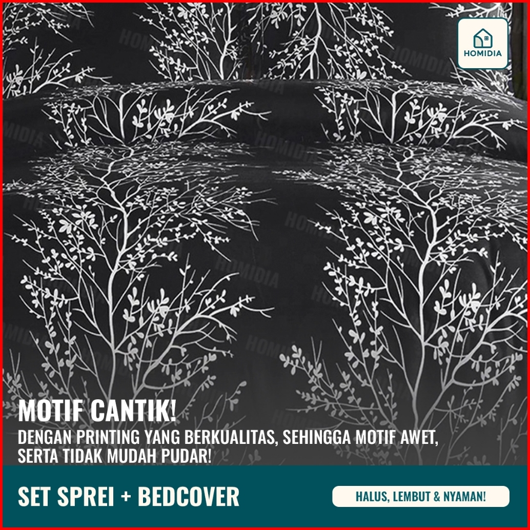 Homidia - Bedcover Set Motif Bunga Ungu Bahan Halus Tebal Adem Anti Luntur