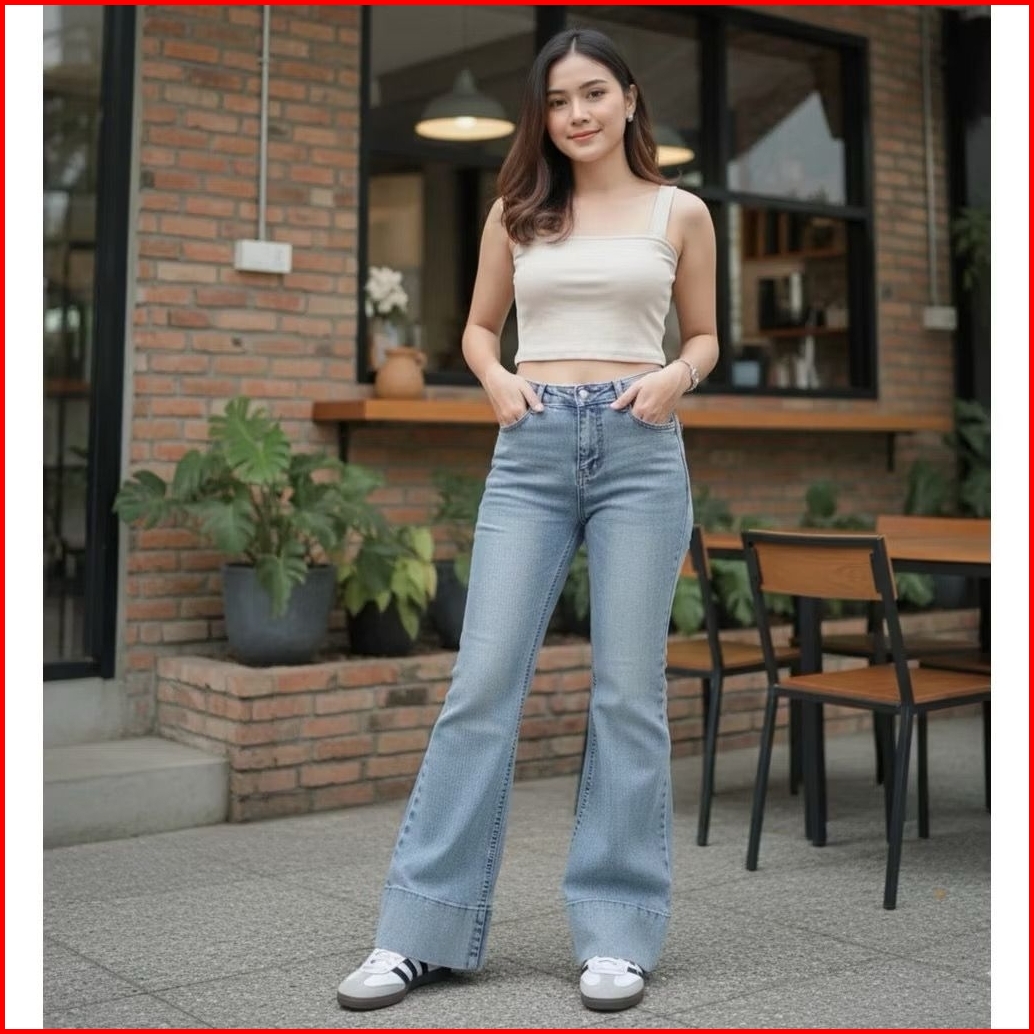 Jennie Highwaist Cutbray Jeans Flare Strecht Lipat Bawah Premium - Celana Cutbray Wanita Highwaist