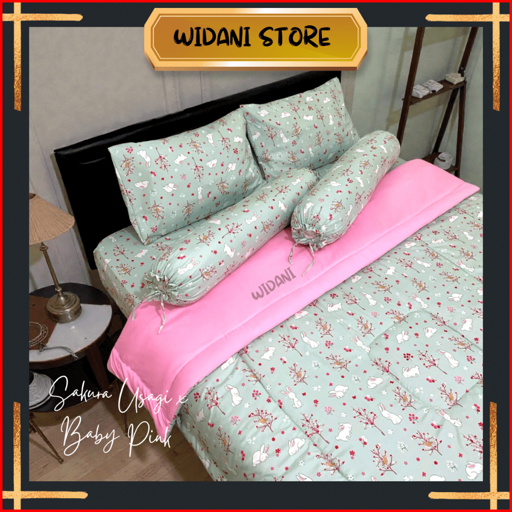 Bedcover Set Sprei Motif Sakura Usagi Mix Baby Pink Widani Store