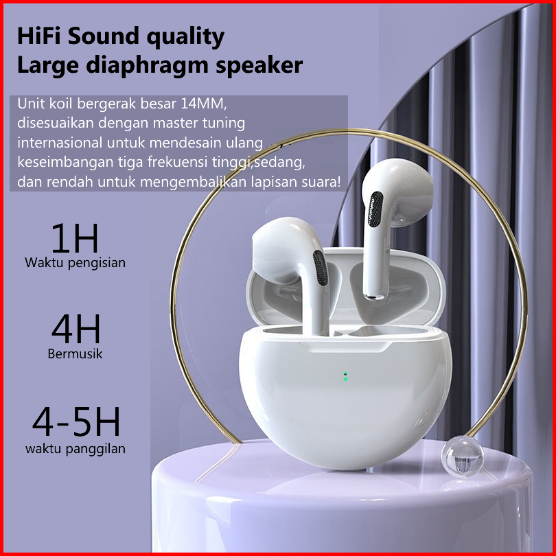 Pro 6 Tws Bluetooth Earphone With Mic Hifi Stereo Touch Earbuds Bluetooth Headset Sport Waterproof Hedset Bloetooth Hens