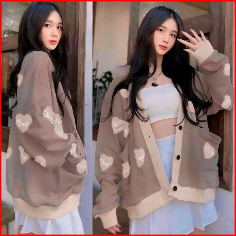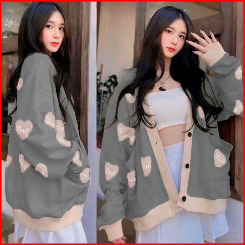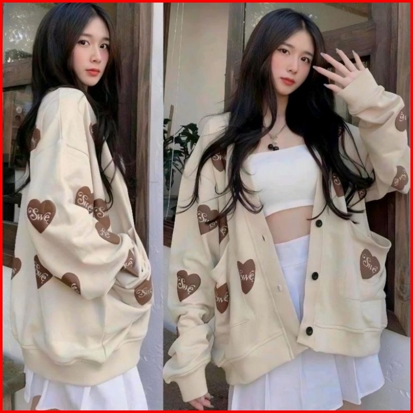 Cardigan Wanita Swe Love Oversize Swe Love Cardi Wanita Outfit Korean Cardy Kancing Bersaku Cardigan Premium Wanita Kore