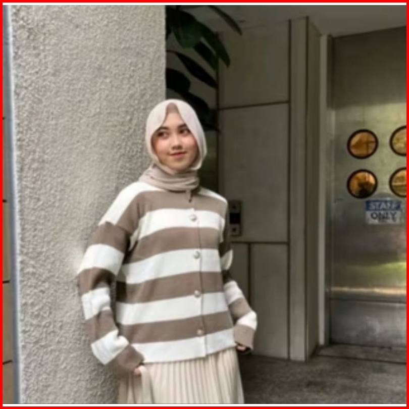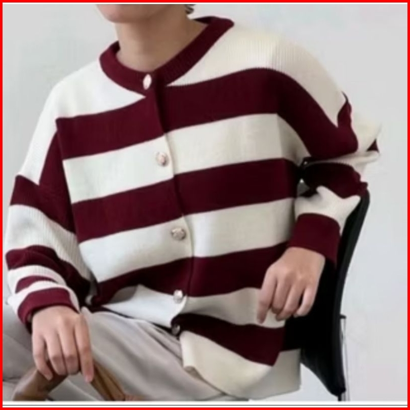 Aline Stripe Cardigan Knitwear Oversize Bahan Rajut Premium Tebal Atasan Wanita