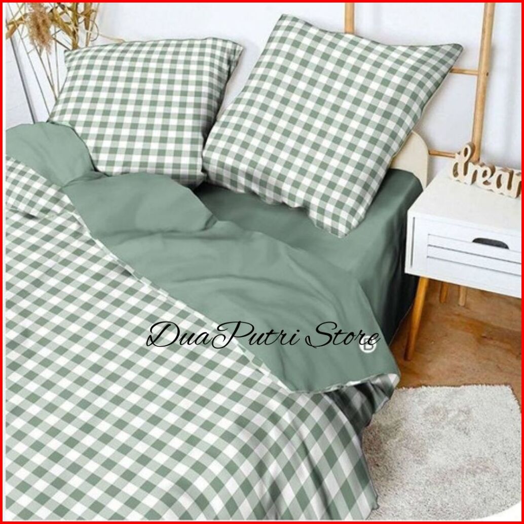 Bedcover Aesthetic Motif Kotak Kombinasi Polos Bed Cover Set Sprei Ukuran 180x200 160x200 120x200