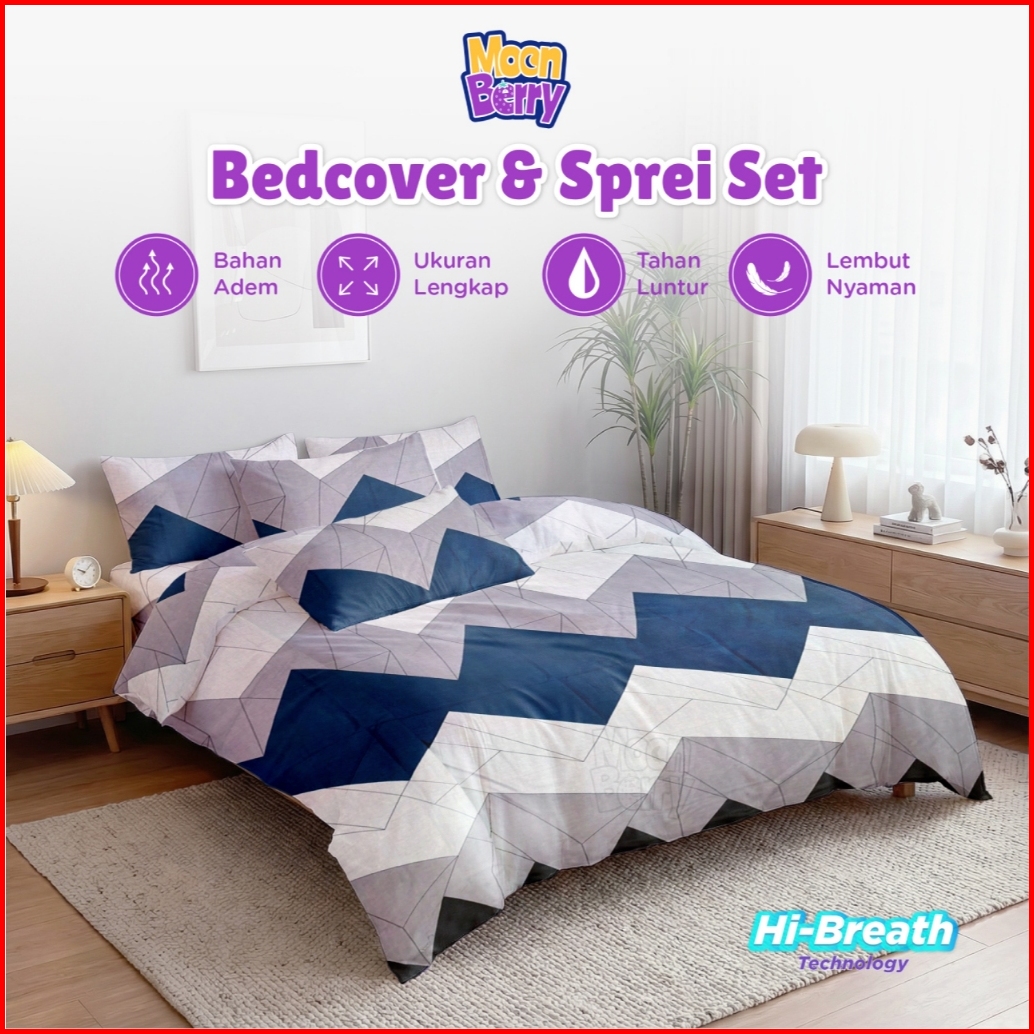 Bed Cover Set Sprei Kenzoo Ukuran Lengkap 180x200 160x200 120x200 - Moonberry Bedcover