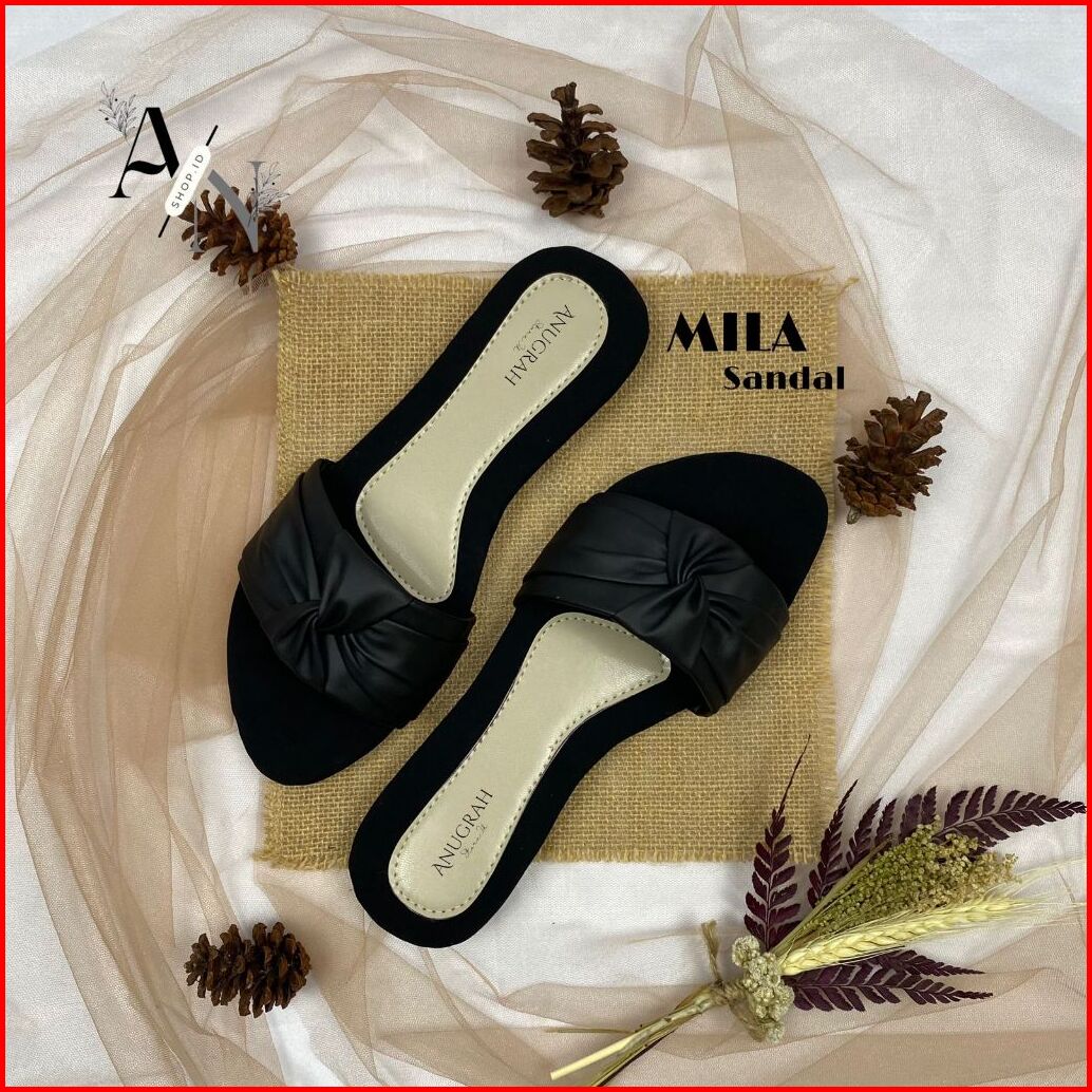An Shoop Sandal Wanita Mila Kekinian Teplek Slip On Korea Flat Cewek Kasual Rumahan Busa Korean