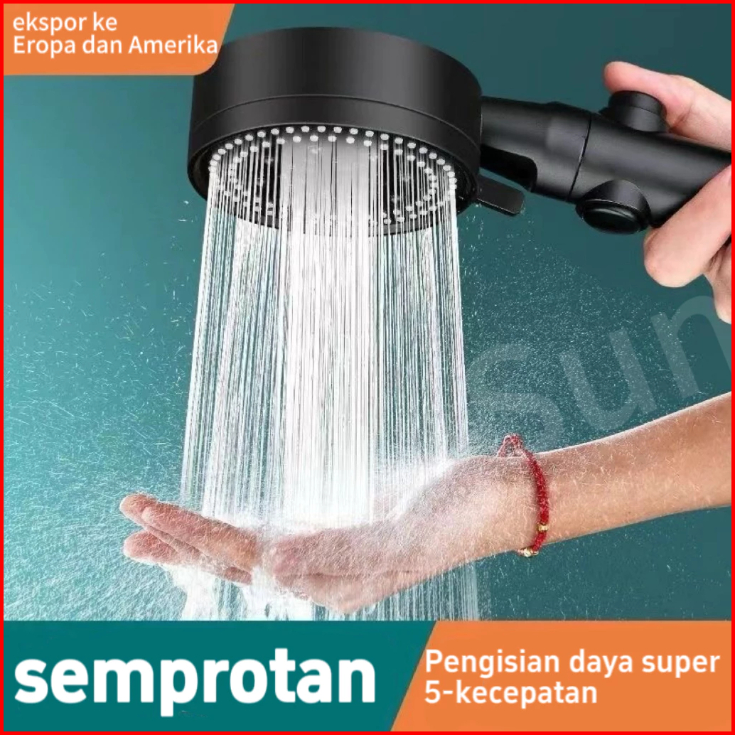 3 In 1 Kepala Shower Set Mandi Hitam Premium Shower Head Set 5 Mode Adjustable Shower Dengan Selang Portable Kamar Mandi