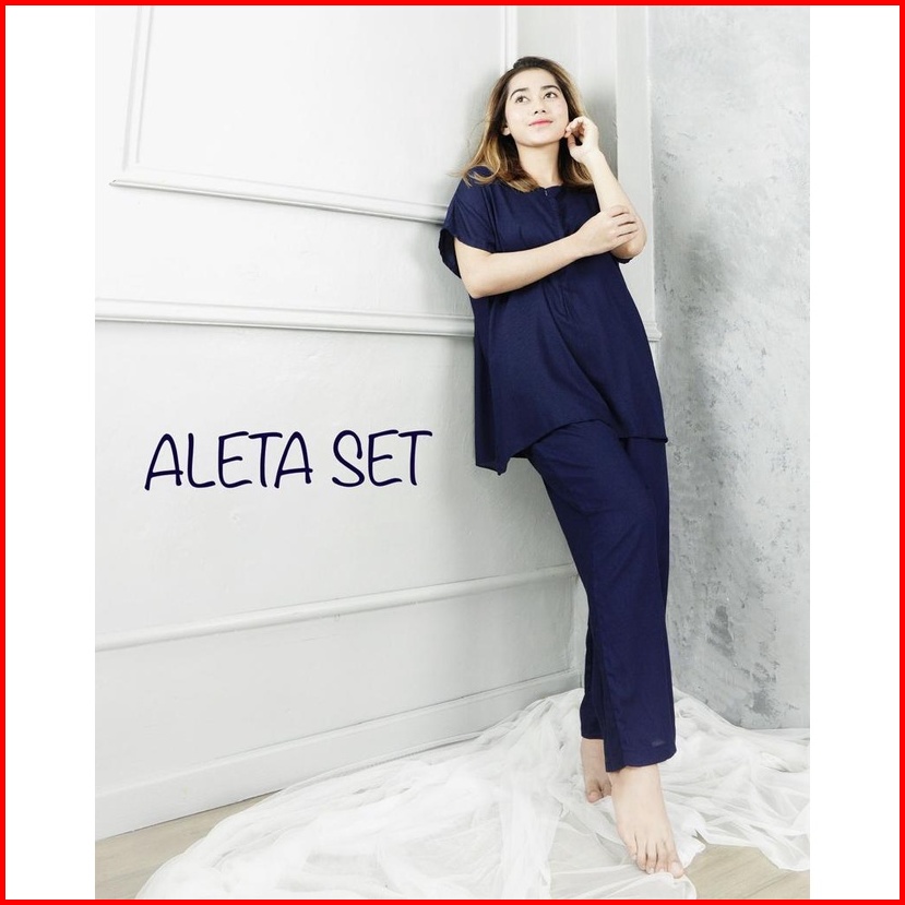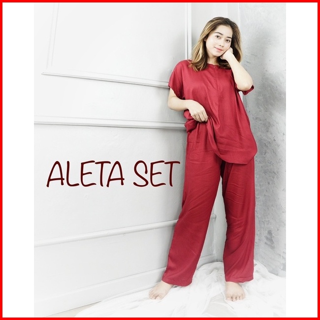 Aleta Set Piyama Rayon Polos Celana Panjang Babydoll One Set Wanita Busui Kekinian