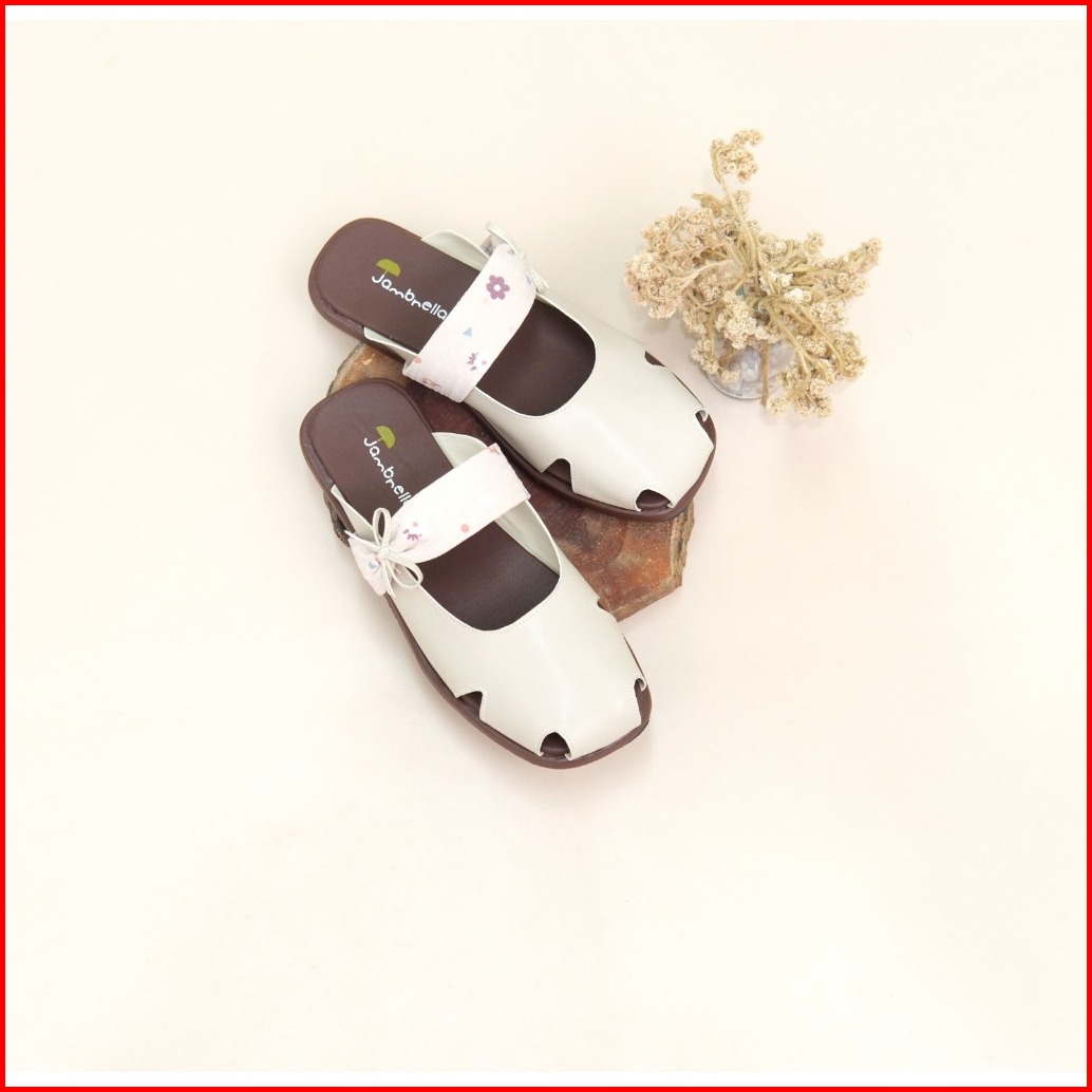 New Jambrella Melody Cream Sandal Flat Wanita Sandal Slop Wanita Trendy