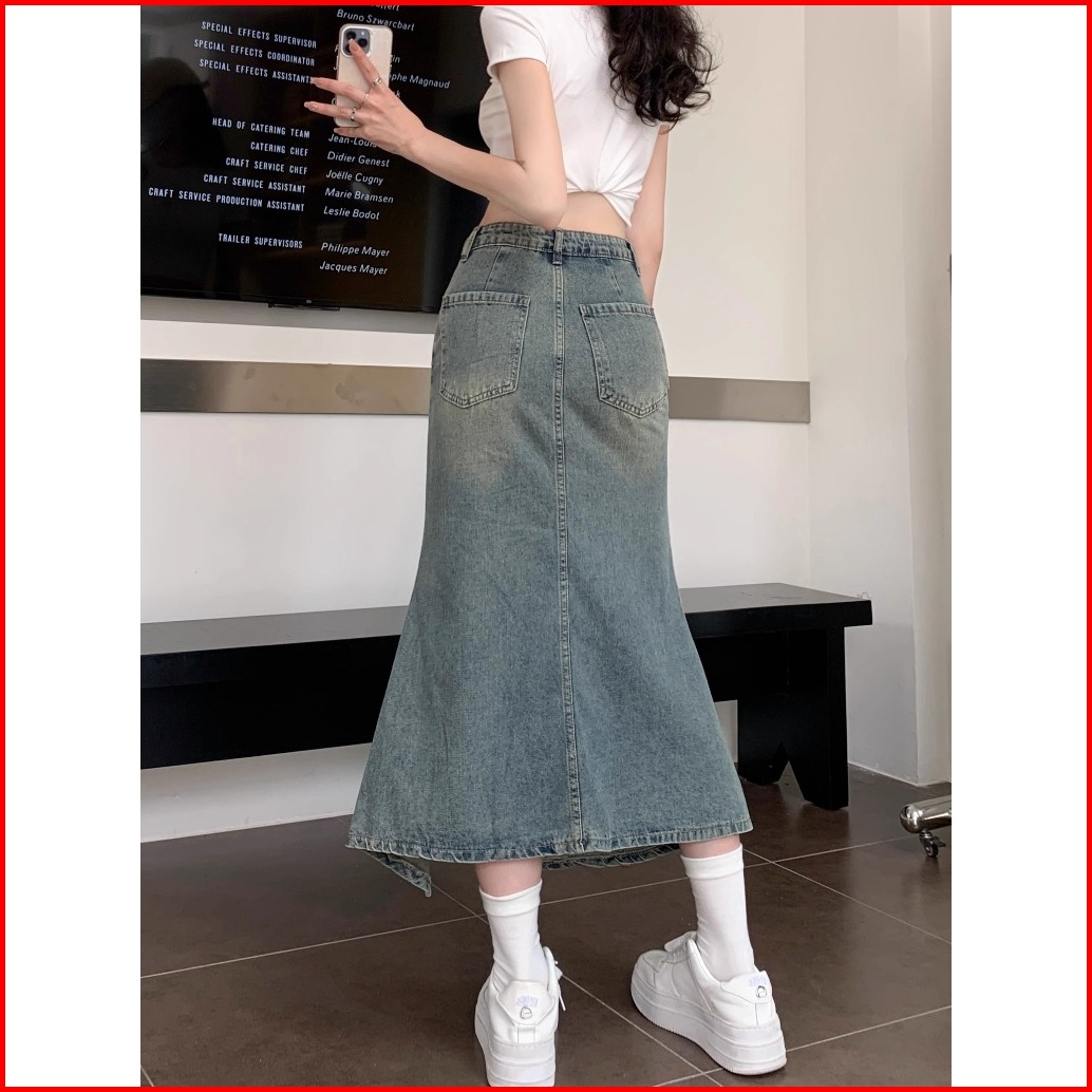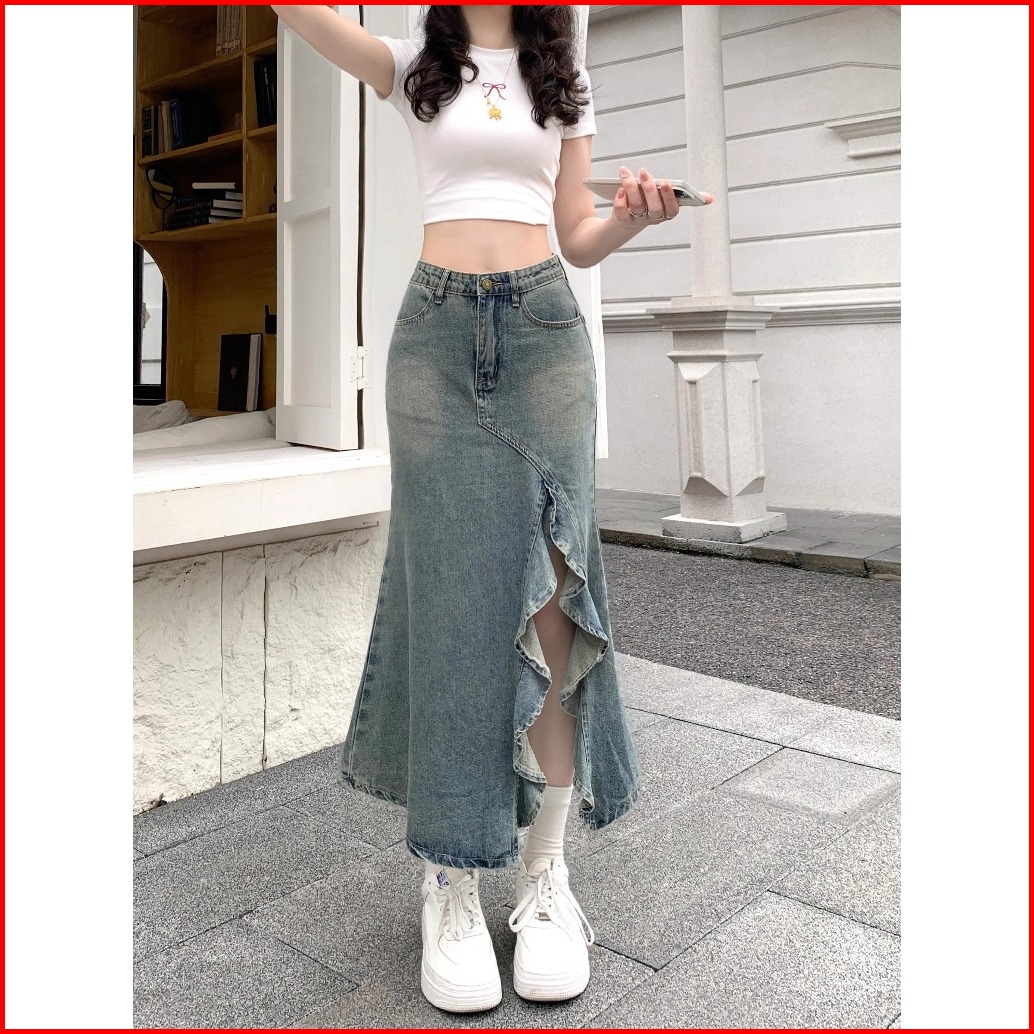 Korean New Wanita Jeans Rok Highwaist Kasual Split Fishtail Rok