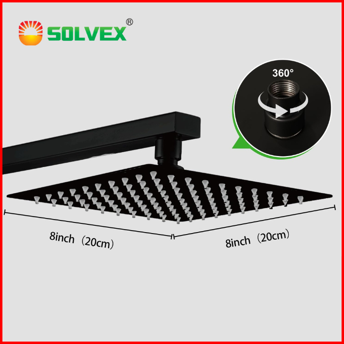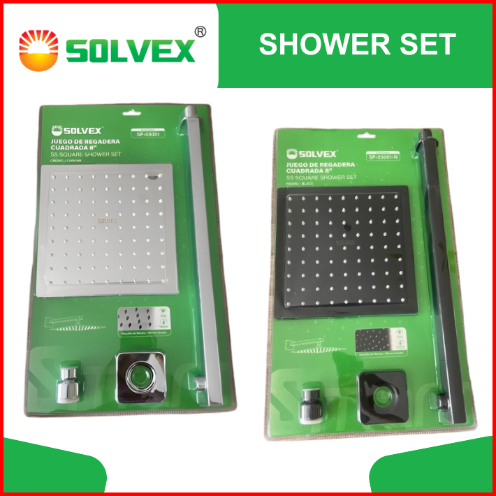 Solvex Wall Shower Set Head Shower Rainfall Paket Tembok Plafon Stainless Bulat Kotak Sp-53001 3