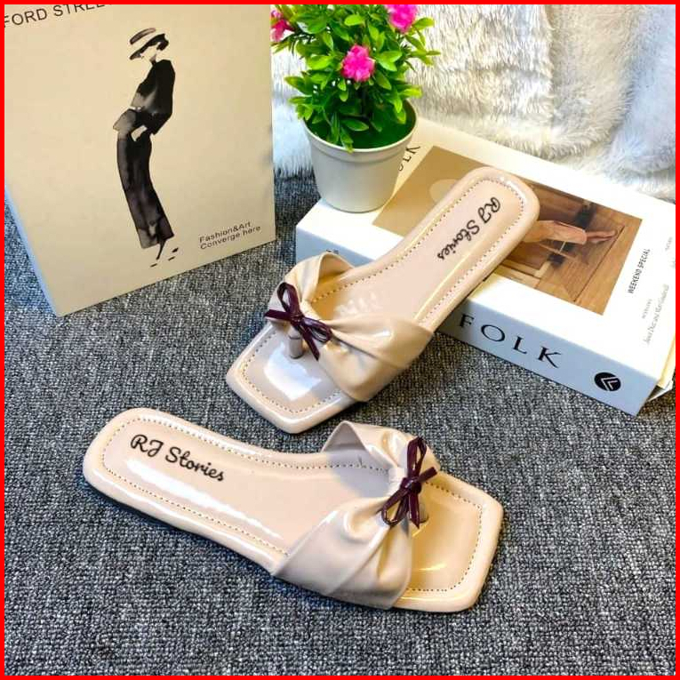 Rj Stories Amirah Sendal Teplek Flatshoes Trendy Anti Slip Wanita Rumahan Full Busa Empuk Simple
