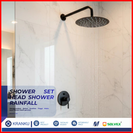 Solvex Rain Shower Set Head Handle Tanam Kran Air Panas Dingin Brass Kuningan Warna Chrome