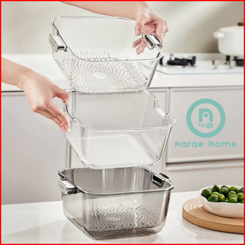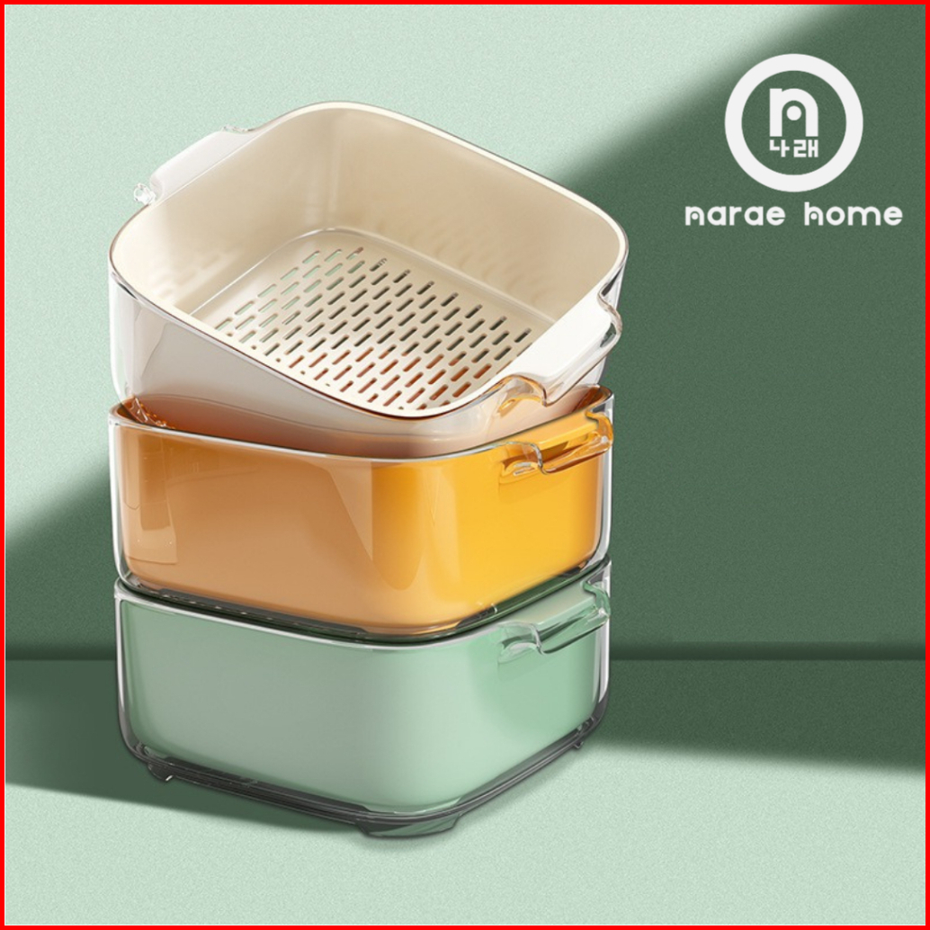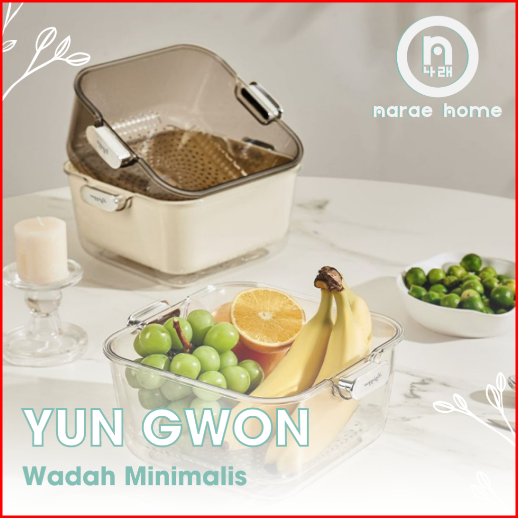 Narae - Yun Gwon Tempat Cuci Buah Buahan Peniris Pintar Wadah Peniris Sayur Dan Buah Dua Lapis Drainer Cuci Buah Double