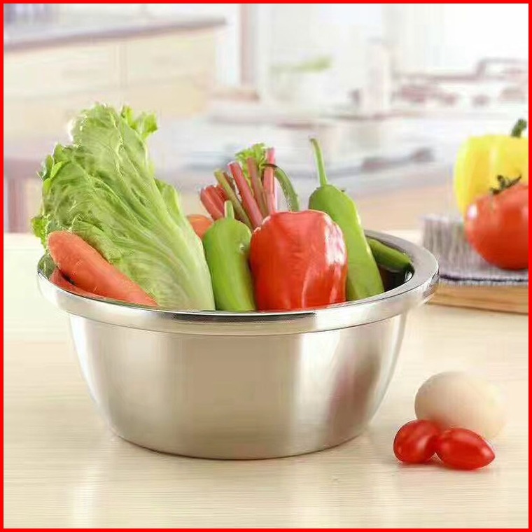 Baskom Masak Serbaguna Bahan Stainless Steel Tebal 1 Set Isi 5 Pcs Mixing Bowl Baskom Cuci Buah Sayur Beras Wadah Masaka