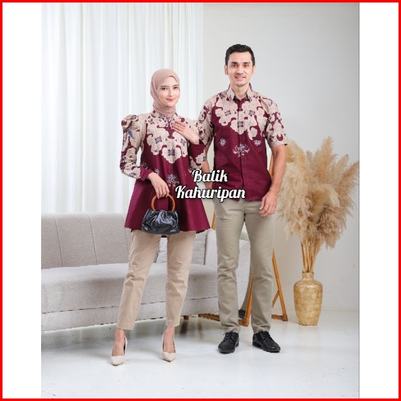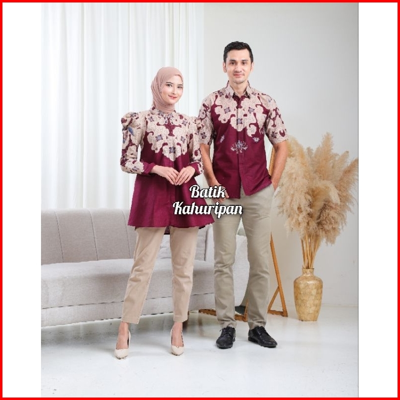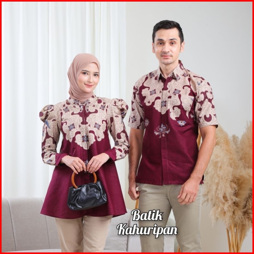 Batik Wanita Burgundy Baju Batik Wanita Modern Lengan Puffy Ada Saku Batik Couple Motif Ranum By Batik Kahuripan