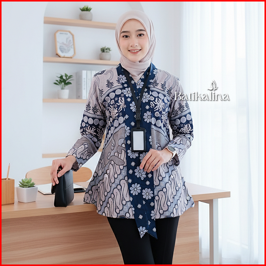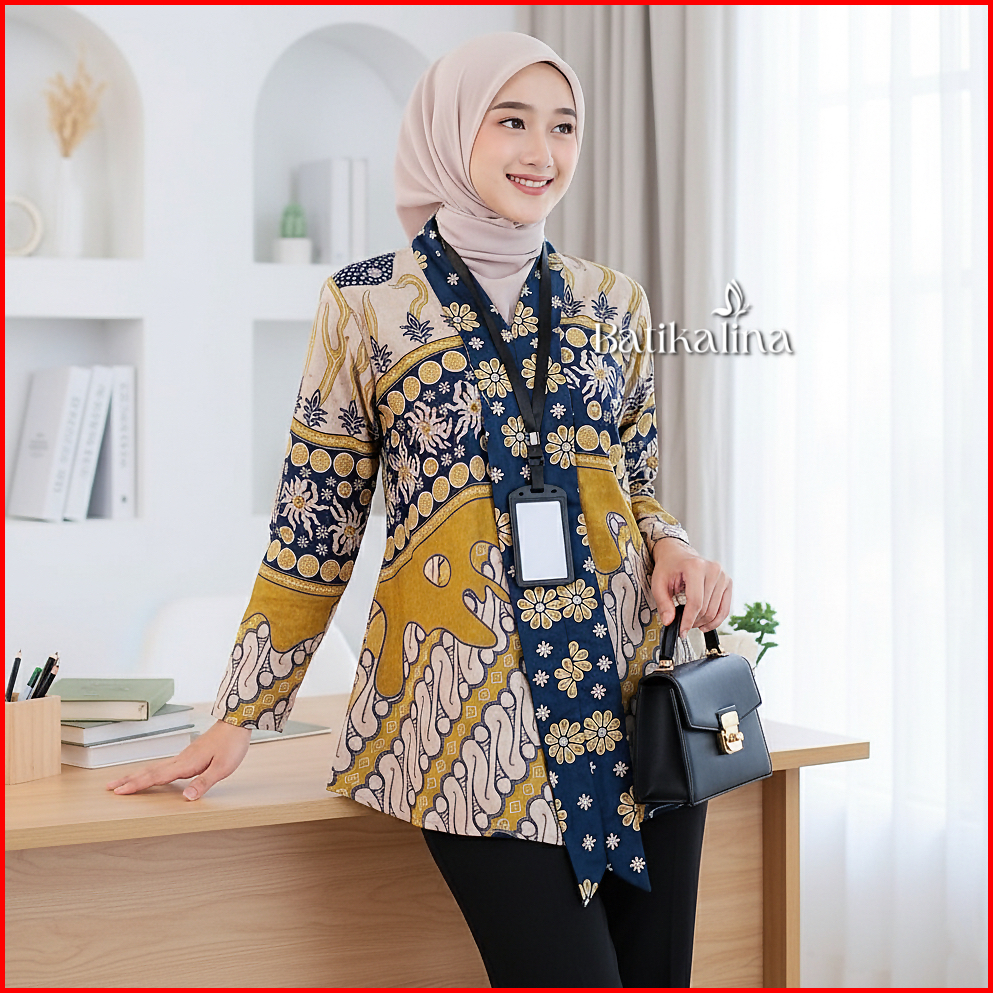 Baju Batik Wanita Modern Atasan Kutubaru Blouse Batik Kerja Wanita Kantor M L Xl Xxl Batik Alina