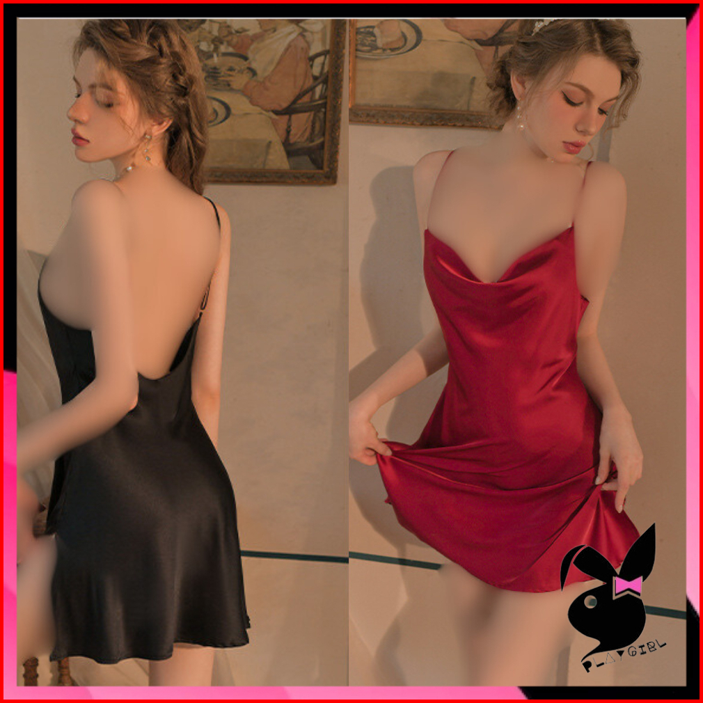 Playgirl Baju Tidur Wanita Sexy Lingerie Dress Lingerie Sexy Hot Suspender Rayuan Loungewear Solid Warna Bahan Polyester
