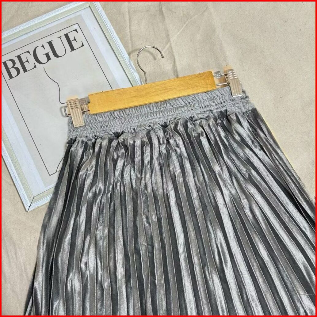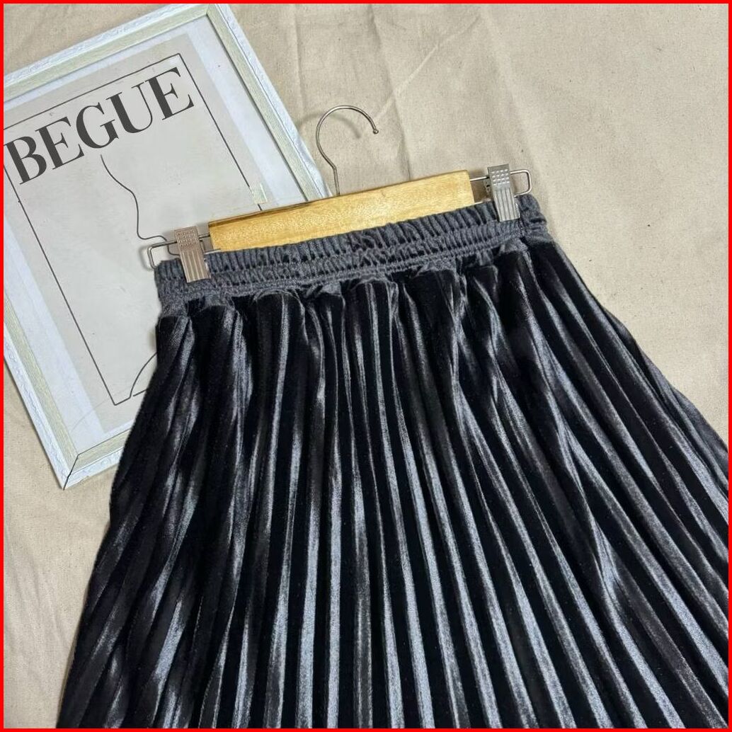 Rok Plisket Bludru 7 8 Premium Kekinian Spring Autumn Woven Hight Waist Plester Midi Skirt Rok Beludru Pendek Rok Velvet