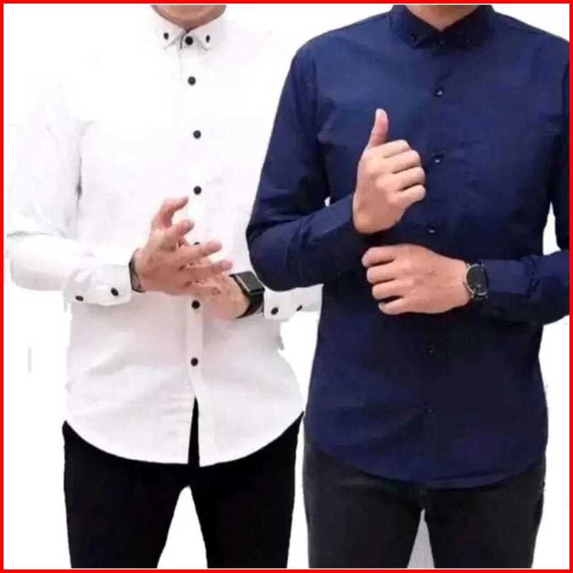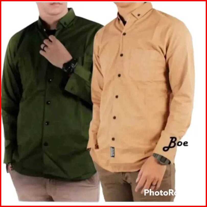 Paket Hemat 2 Pcs Kemeja Pria Polos Lengan Panjang Baju Hem Pria Casual