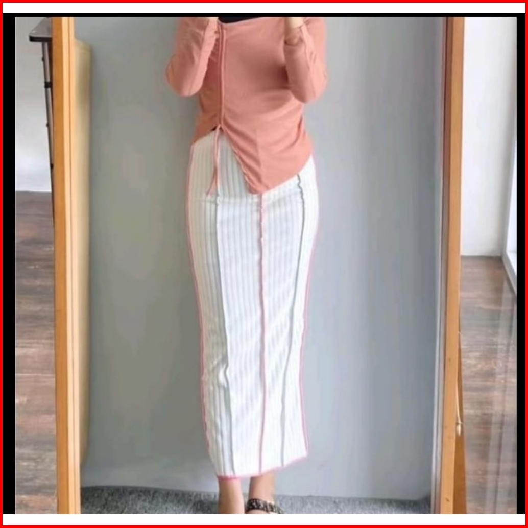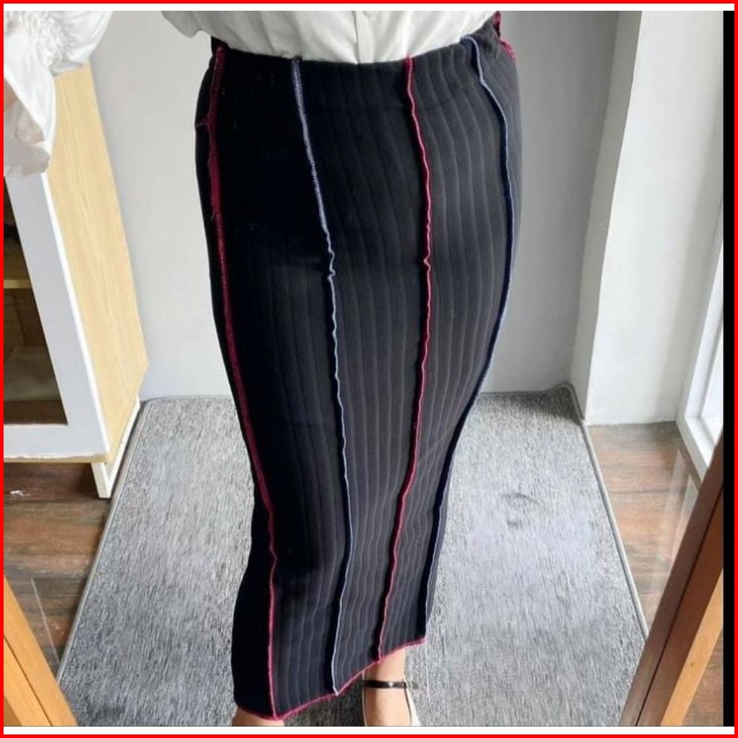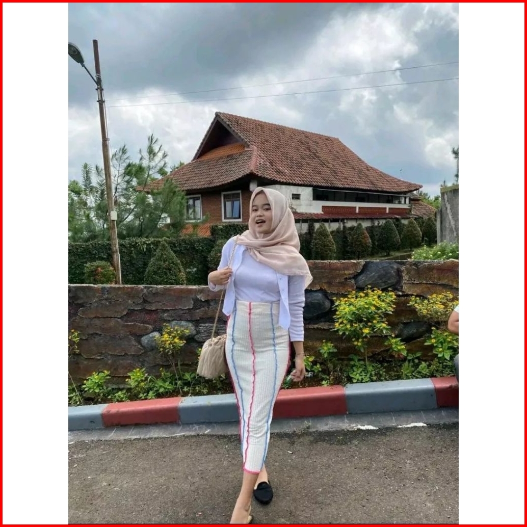 New Rok Span Knit Alice Skrit Rainbow Rok Wanita Korean Orinoza Skrit Rainbow Rok Korean...