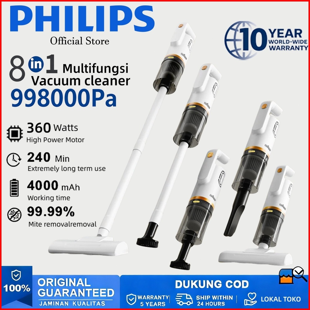 Philips Penyedot Debu 8 In 1 Vacuum Cleaner Multifungsi 998000pa No.1 Suhu Tengkorak Garansi 10 Tahun