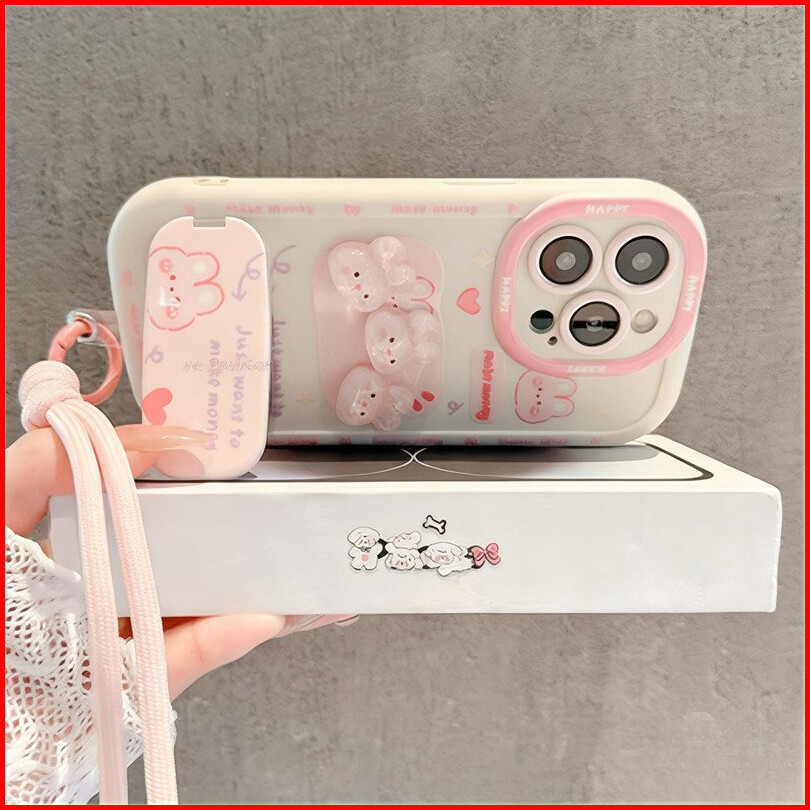 3d Premium Kelinci Cermin Casing Hp Untuk Iphone 16 15 14 13 12 11 Promax 7 8 Plus Xr Xs Max Silikon Lucu Anti Jatuh Cas