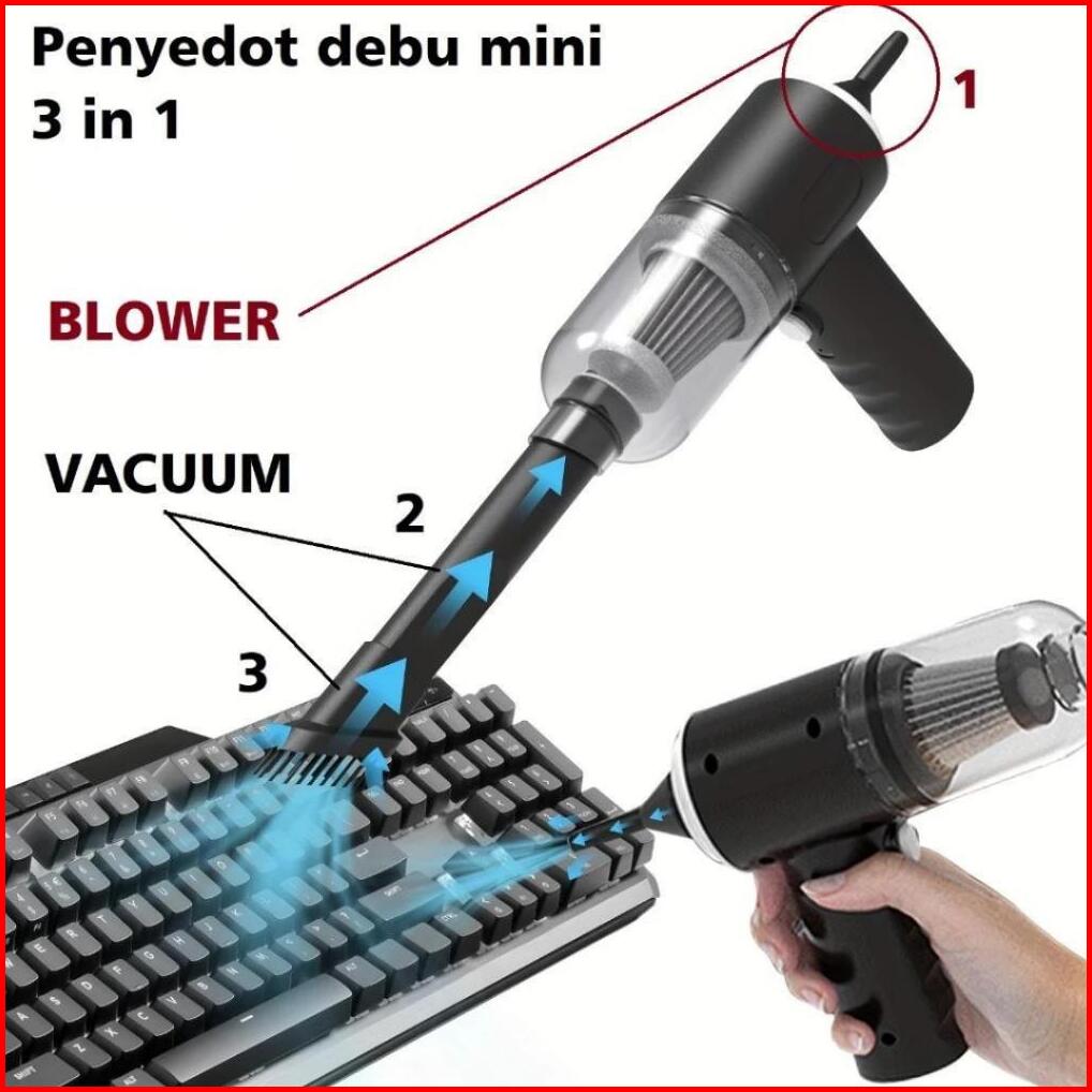 New 3 In 1 Vacumm Cleaner Mobil Portable Mini Lj-008 Rechargeable - Vacum Penyedot Penghisap Peniup Debu Mini Serbaguna