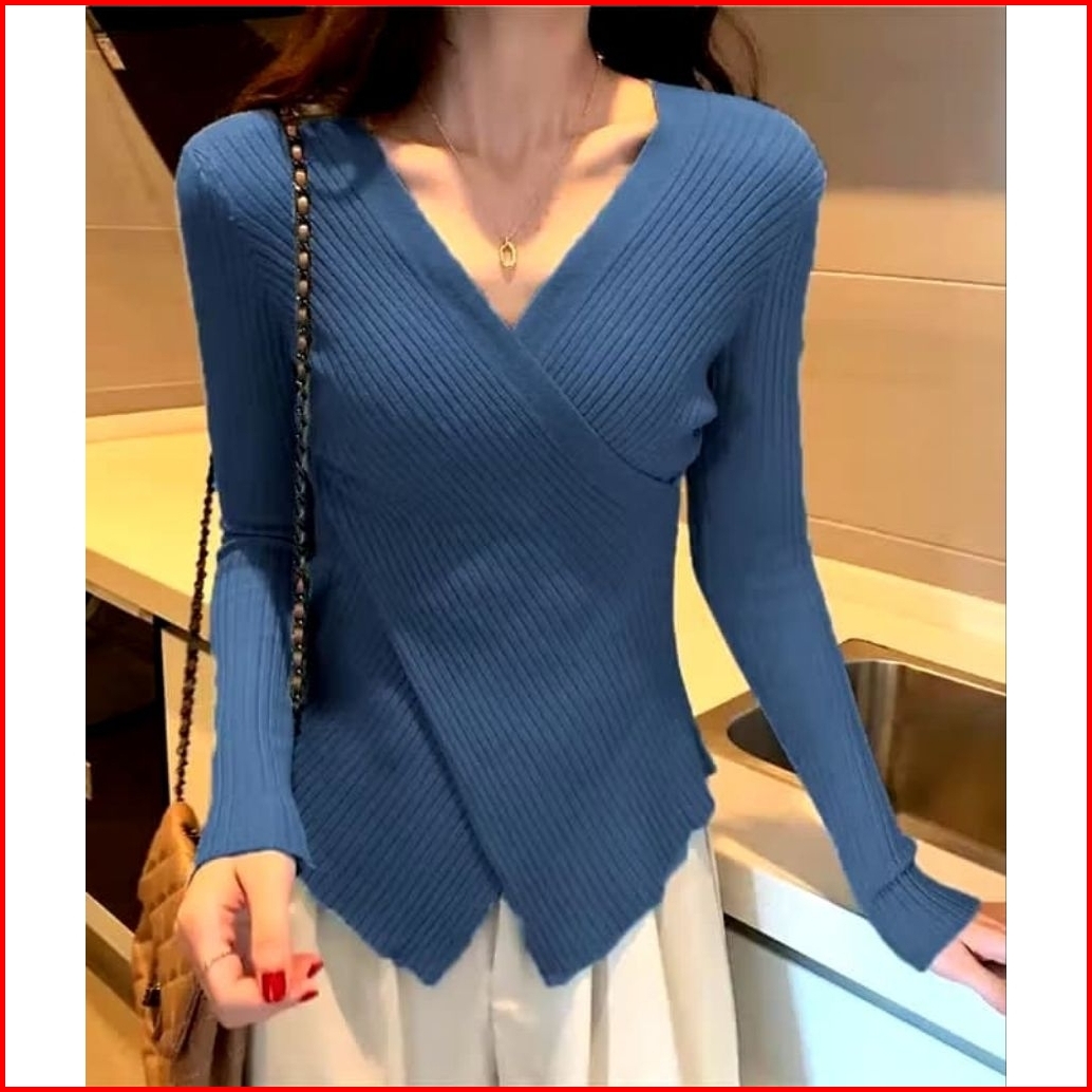 Eliza Knit Sweater Wanita V-neck Gaya Korea All-match Pakaian Wanita Knit